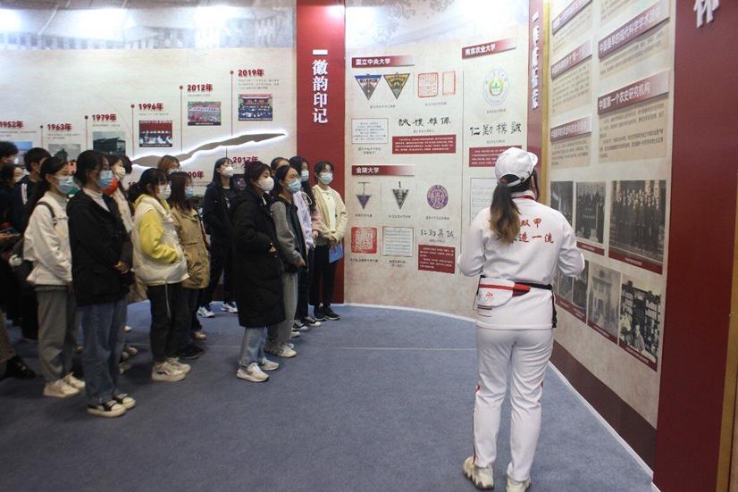 以上两个部分参观结束后,学生们自行游览以实物形式展出的学校农业科技创新的前沿成果、南农特色扶贫产品、大学生科技文化作品、文化创意产品等,并通过展览的第三部分“奋进”篇章,深入了解学校五大学部、21个学院的办学成就。