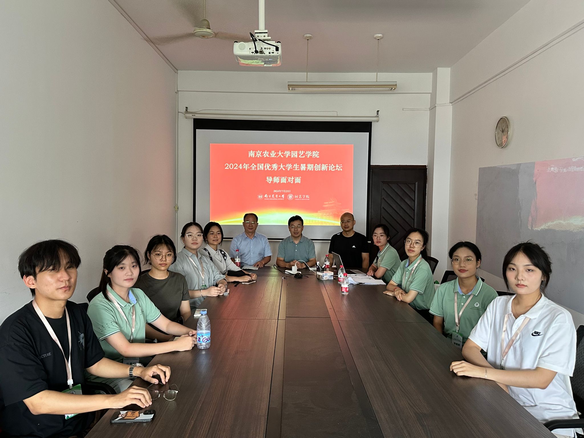 2024年全国优秀大学生暑期创新论坛导师面对面,在学院各会议室分学科点有序开展,来自蔬菜、果树、观赏园艺、设施园艺、茶学、风景园林6个学科的25名专业教师参会交流,所有营员通过PPT汇报自己的学习经历、科研成果,导师们对同学们汇报内容进行提问,并开展科研意向的交流探讨与答疑解惑,现场气氛热烈融洽。