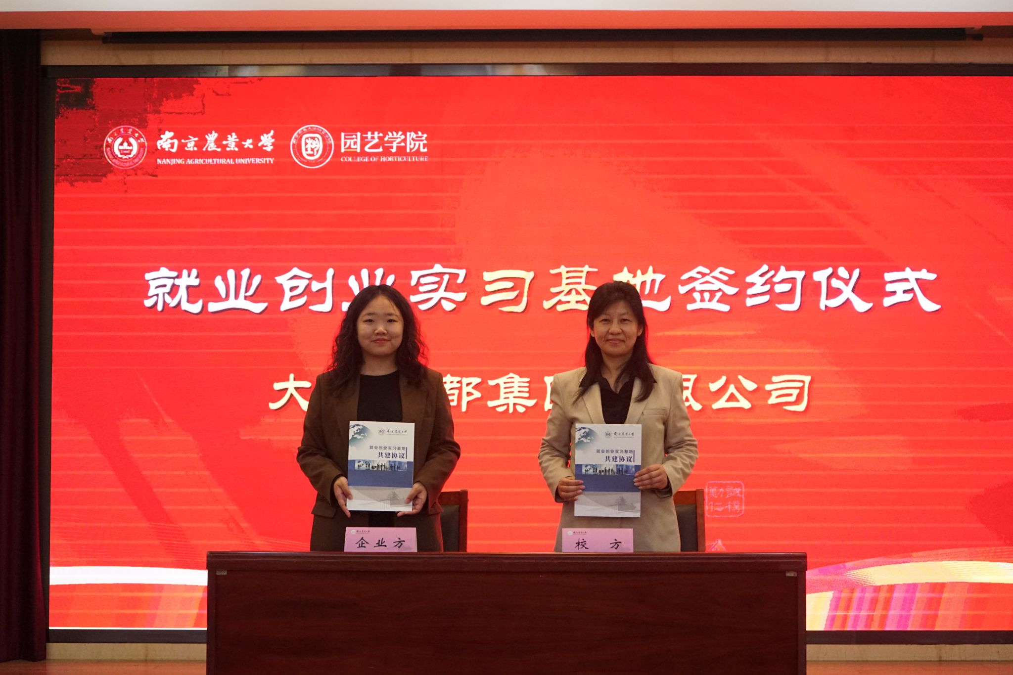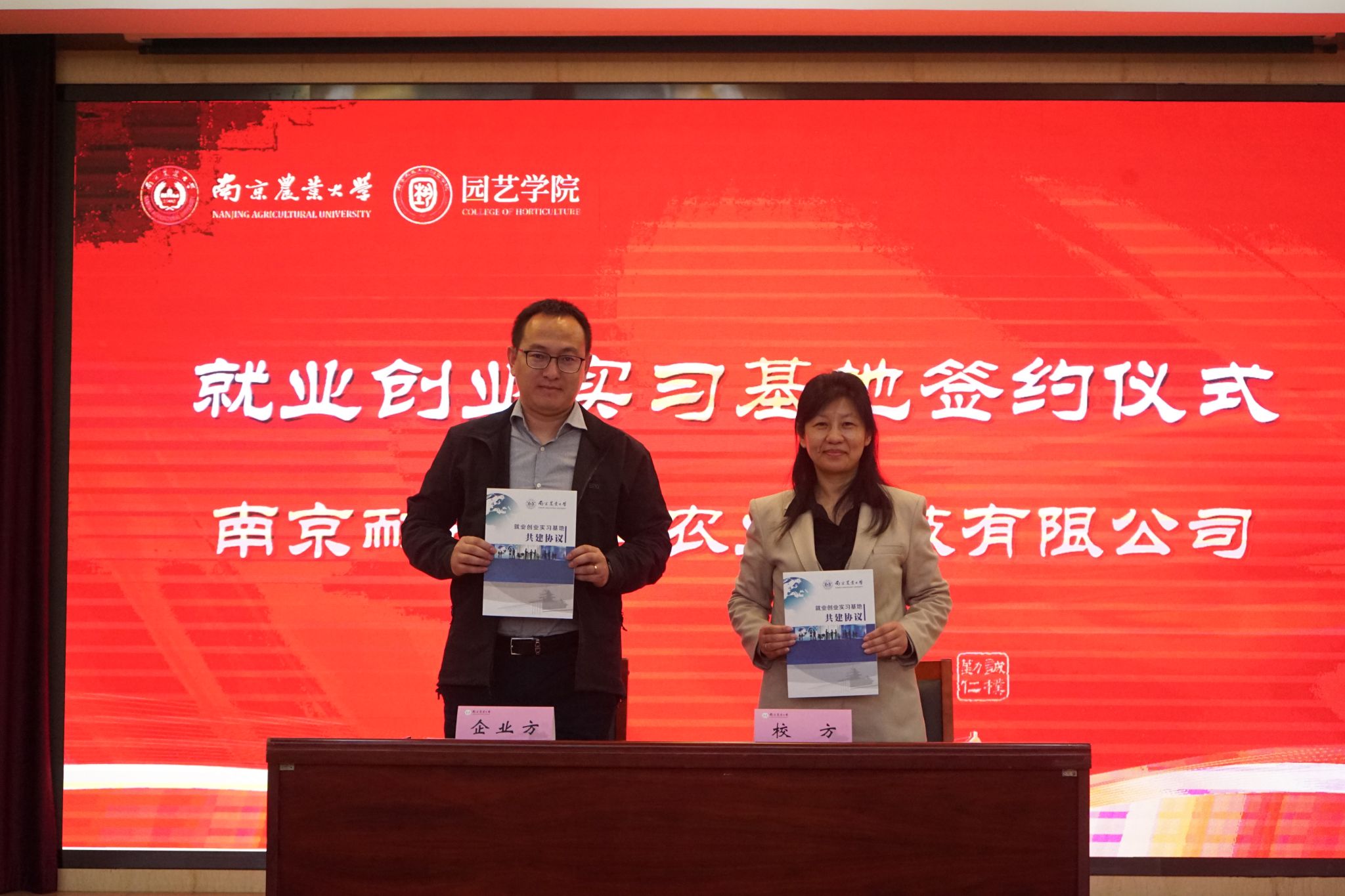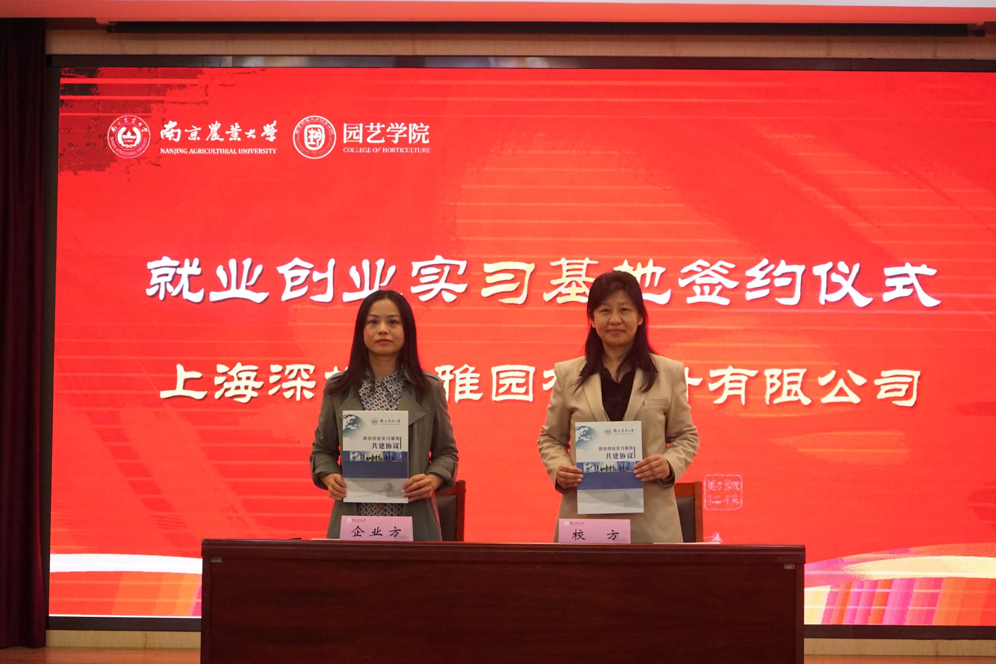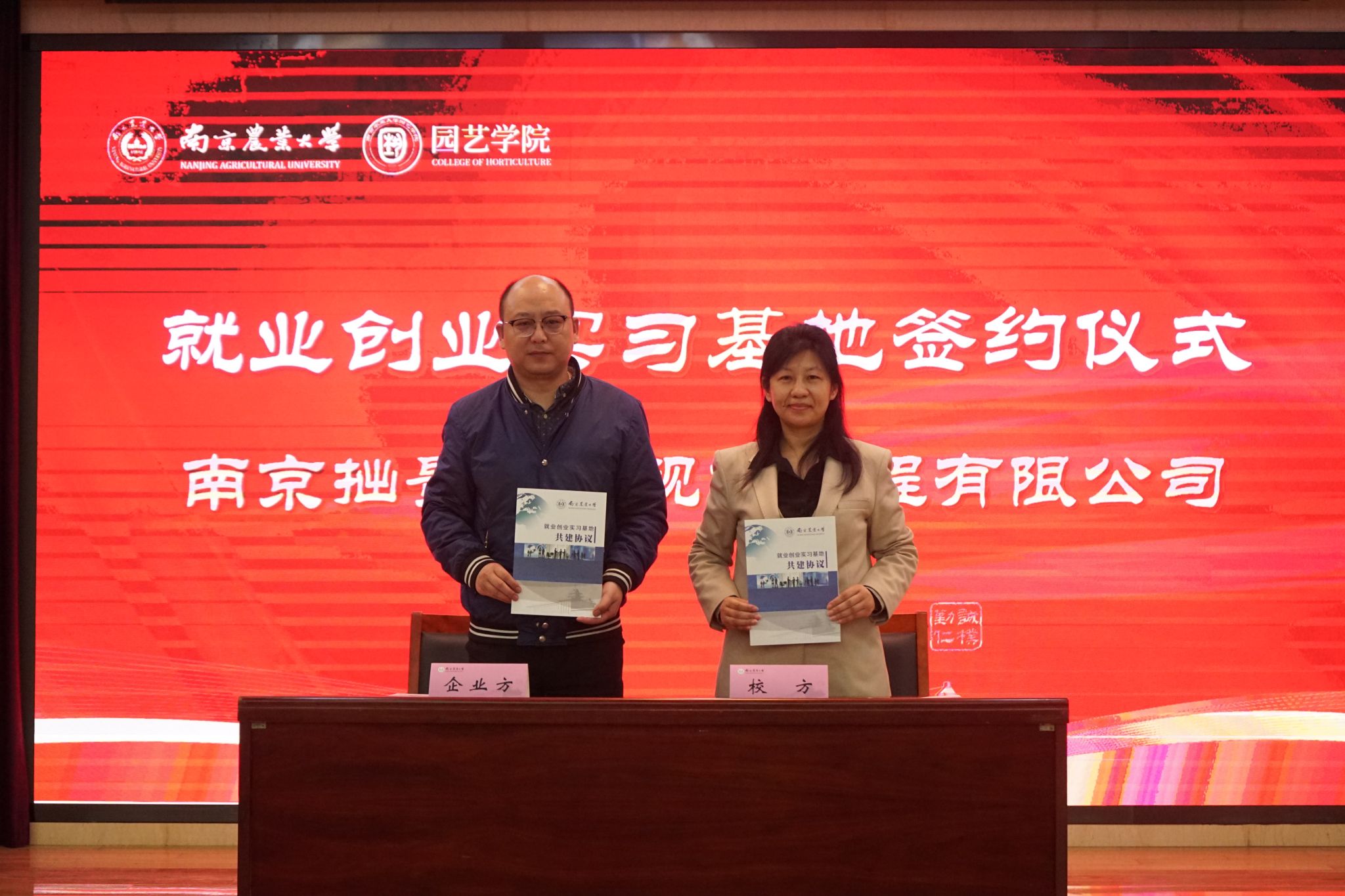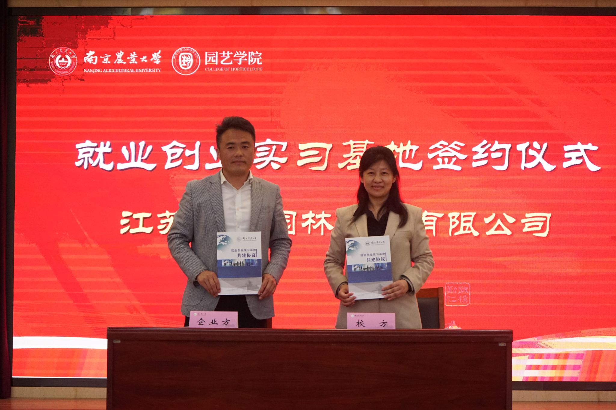 与江苏百绿园林集团有限公司、坂田种苗(苏州)有限公司、缤纷园艺(中国)有限公司、南京拙景园林规划工程有限公司、南京耐特菲姆农业科技有限公司、上海深圳奥雅园林设计有限公司、大连毅都集团有限公司完成就业创业基地签约仪式,为后续校企平台搭建、就业资源整合开启新的篇章。