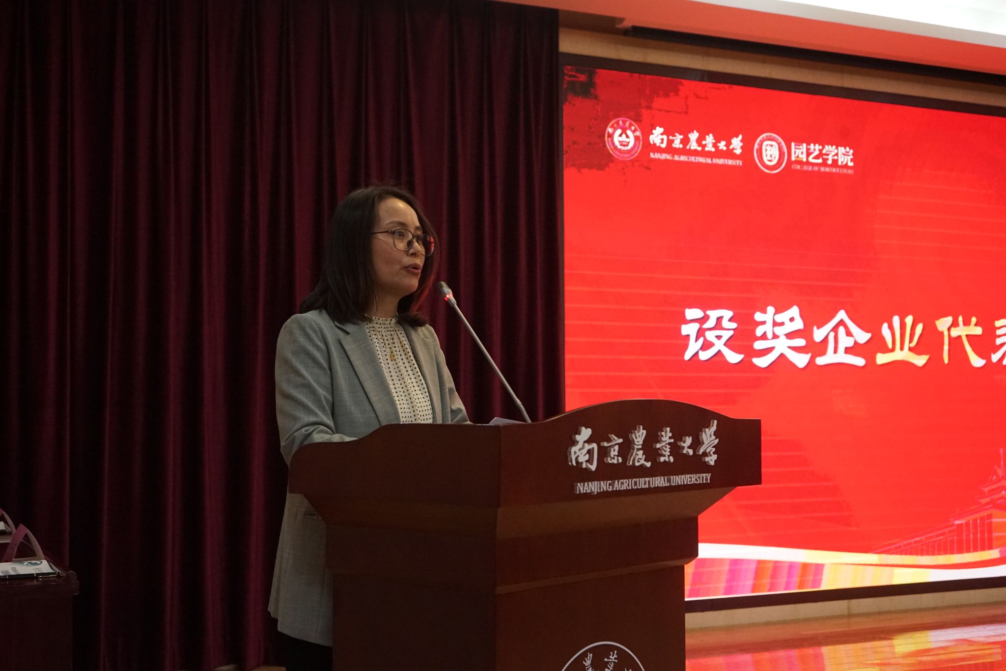 曹敏亚作为设奖代表发言。她对学校和学院的支持信任表示感谢。她强调,作为设奖企业将与学生建立更加紧密的联系,为青年学子提供更多优质的实践机会和更加务实的职业发展引导,帮助园艺学子在农业领域取得更大成就。