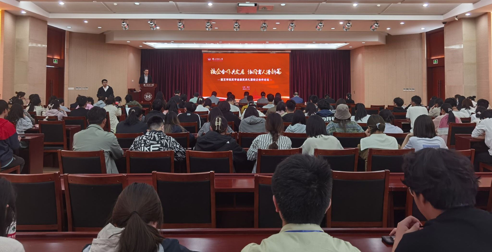 于金陵研究院三楼报告厅隆重举办学院奖学金颁奖典礼暨校企合作论坛,江苏百绿园林集团有限公司副总经理姚礼报,坂田种苗(苏州)有限公司总务管理部副部长曹敏亚,缤纷园艺(中国)有限公司人力资源总监尹龙飞,南京拙景园林规划工程有限公司总经理向东潇,南京耐特菲姆农业科技有限公司总经理于超,上海深圳奥雅园林设计有限公司高级招聘绩效经理谭燕妮,大连毅都集团有限公司人事经理李东舫,校学工处副处长、研究生工作部副部长刘照云,天天a片
