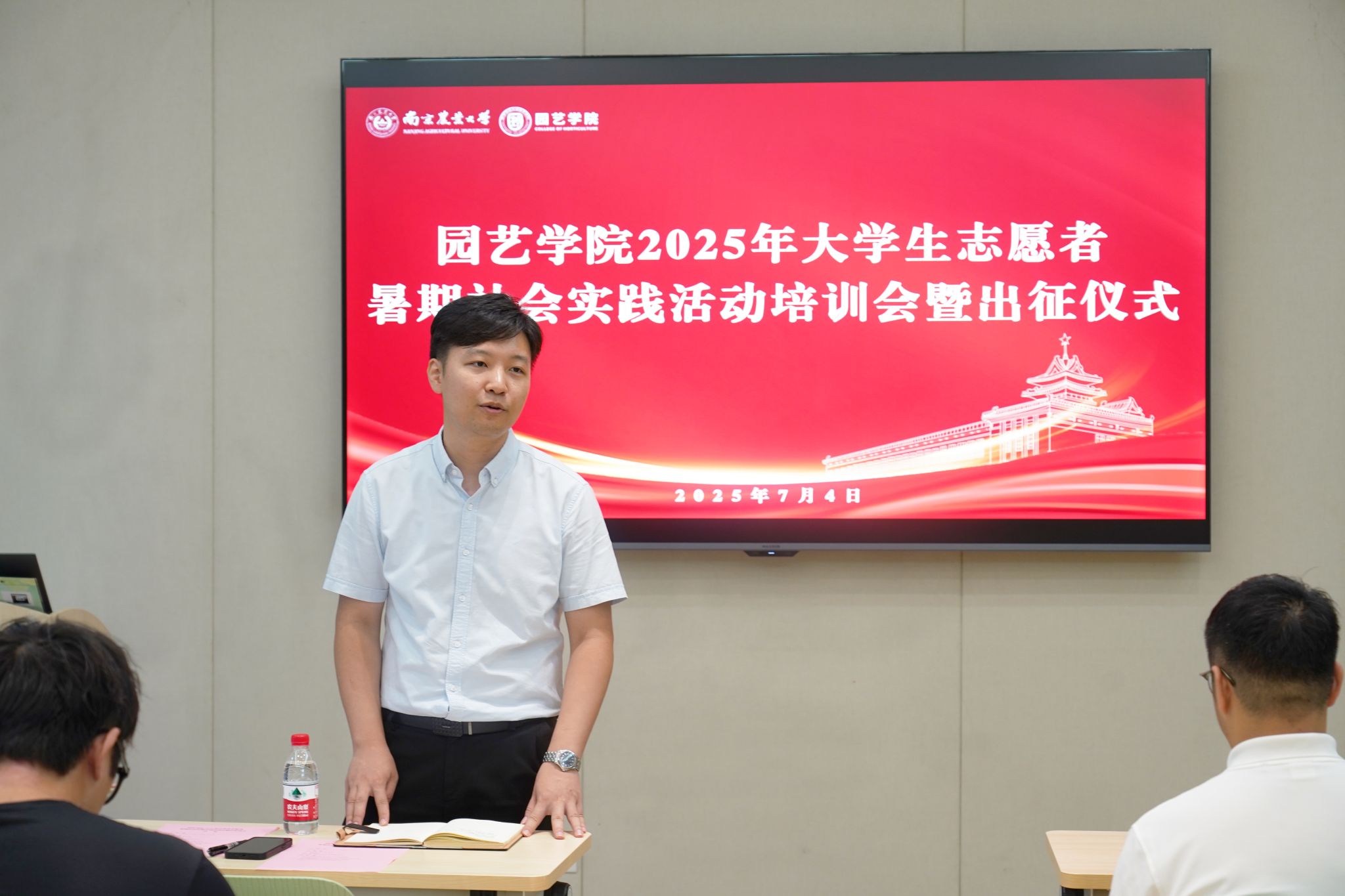 7月4日下午,天天a片 举行2025年大学生暑期社会实践出征仪式暨培训会。学院党委副书记束浩渊,校团委宣传文化部部长万洋波,学院辅导员赵家豪和暑期社会实践团队学生代表参加活动。