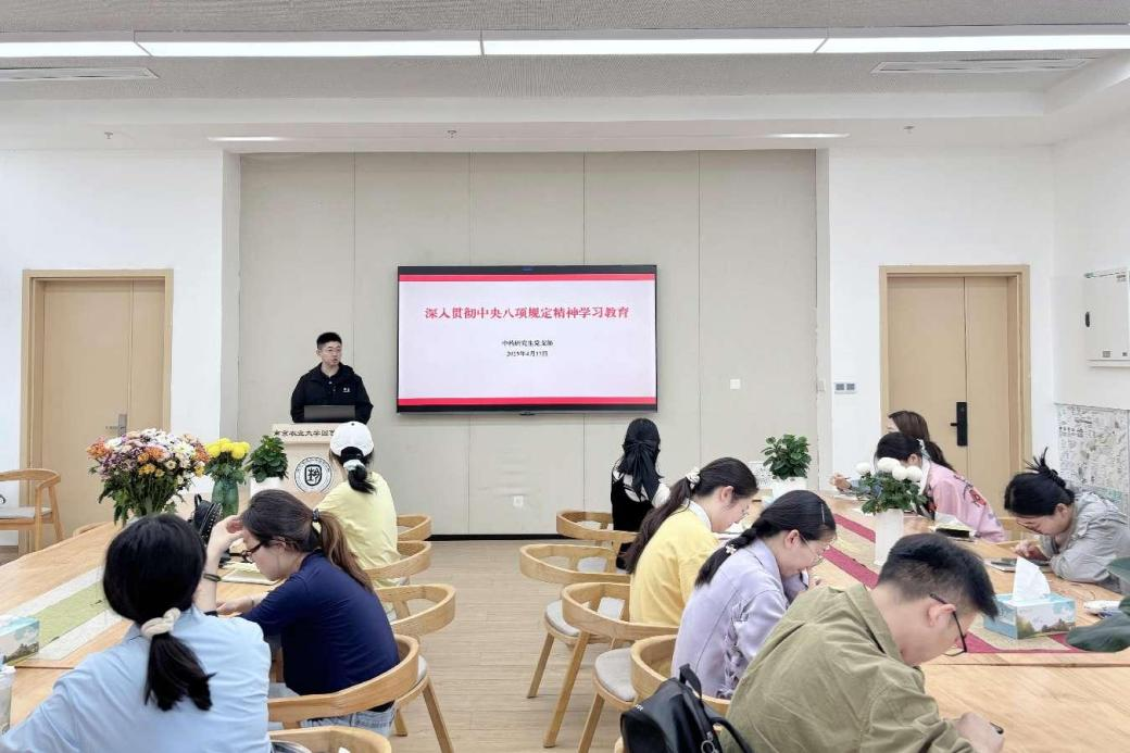 4月17日下午,中药研究生党支部在园艺楼167会议室开展中央八项规定精神专题学习暨《习近平关于加强党的作风建设论述摘编》集中研讨会,会议由支部书记窦靓主持。会前,支部成员以个人自学及党小组组内学习方式进行了《习近平关于加强党的作风建设论述摘编》(以下简称《摘编》)学习。