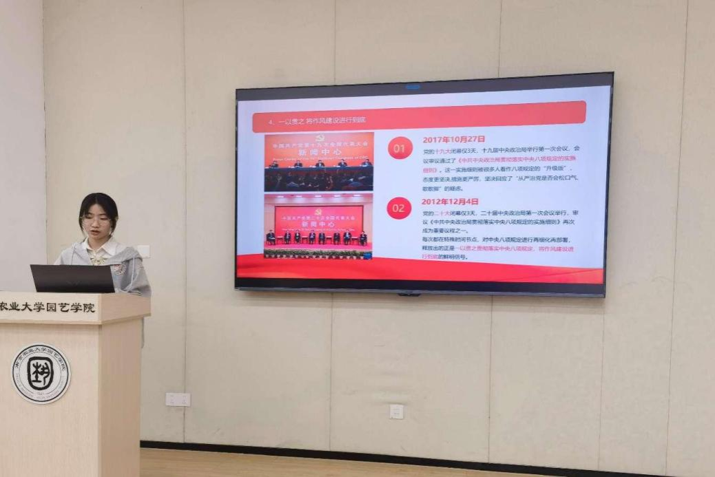 会上还开展了积极分子微党课讲述活动。2023级积极分子袁欣玥同学为大家进行了《中央八项规定精神相关制度规定》的微党课讲述,为大家整理讲解了自党的十八大以来,党中央制定的一系列改进作风的制度规定。