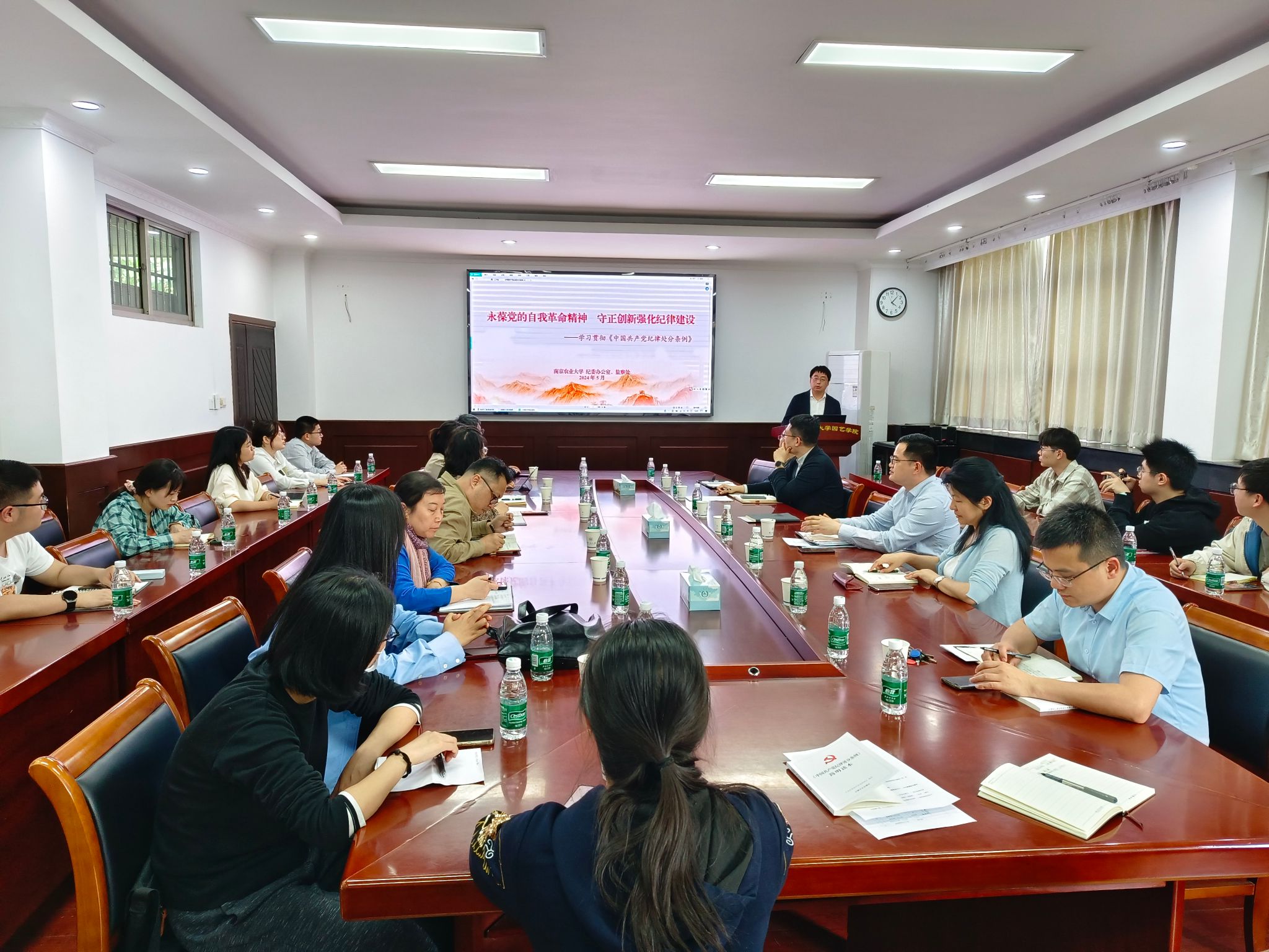 韩健在总结时要求全院党员和领导干部要把学习贯彻《条例》作为重要政治任务,以严明的纪律推进党的自我革命,不断提升党员干部的政治素养和拒腐防变能力,使廉洁自律规范内化于心、外化于行,坚定理想信念、增强宗旨意识、严格遵守法律法规,守住纪律“底线”、不越“红线”,切实以学纪、知纪、明纪、守纪的优良纪律作风保障学院各项事业高质量发展。