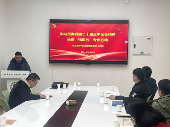 观赏茶学专业教师党支部在园艺楼134会议室开展了“学习贯彻党的二十届三中全会精神”主题党日活动,支部全体在校教师党员参加活动。