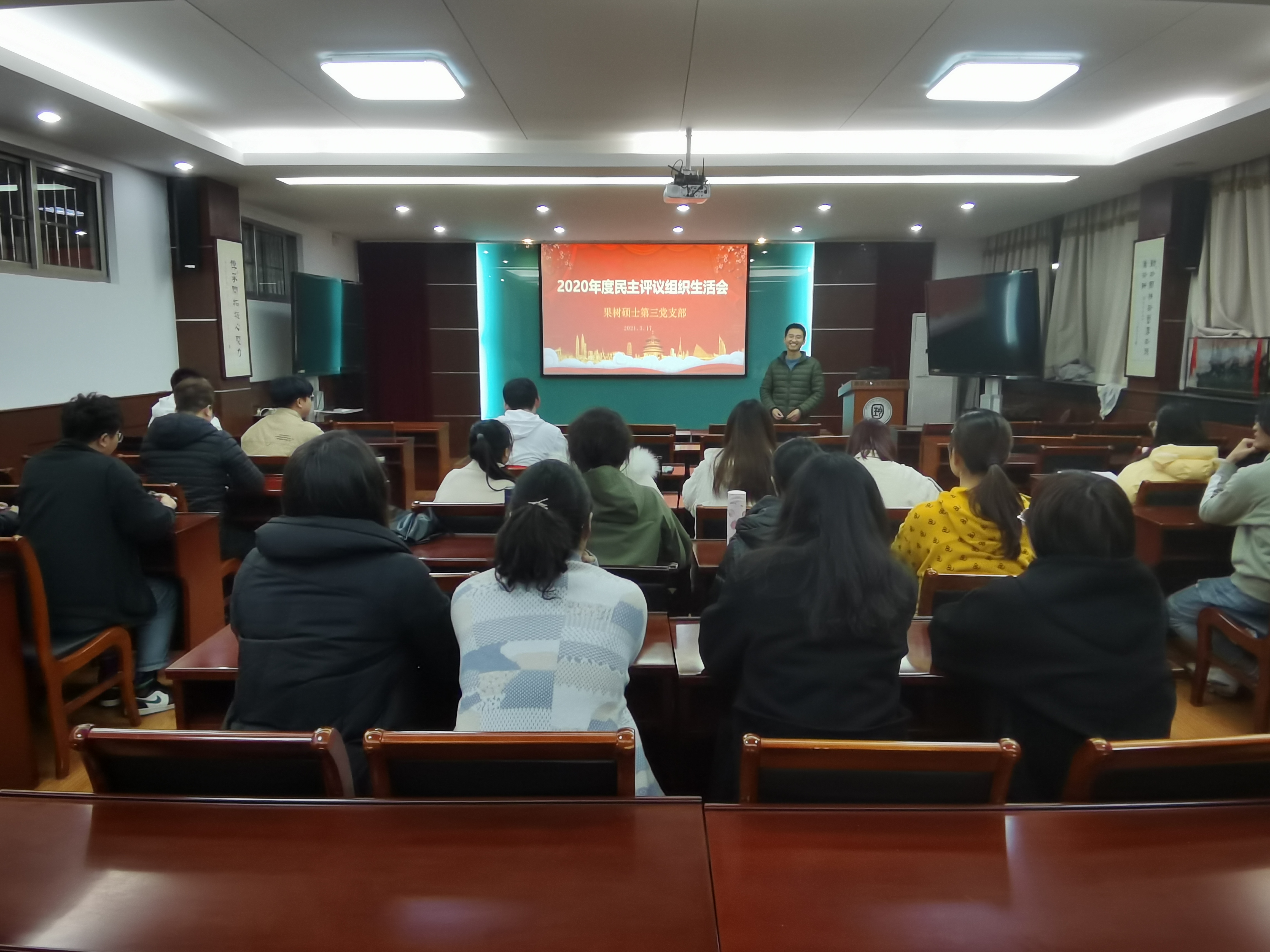 2021年3月17日晚,果树硕士第三党支部于生科楼B4011成功举办2020年度民主评议组织生活会,25名支部党员参加本次会议,会议由支部书记芮伟康主持。