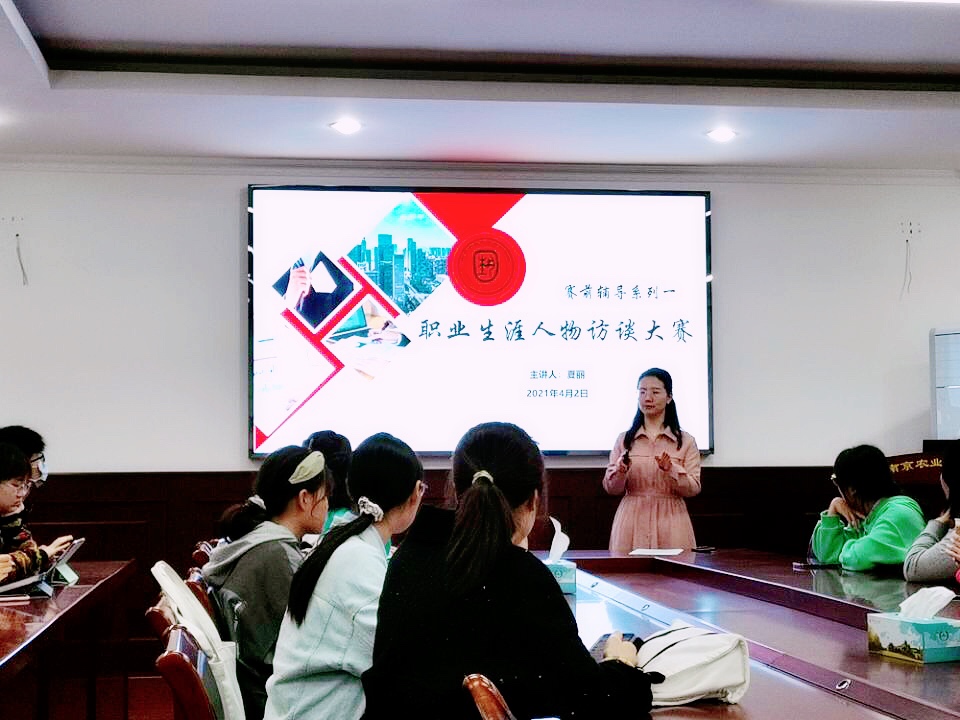 特举办职业生涯人物访谈大赛赛前辅导,本次辅导由学院学工办副主任、本科生辅导员夏丽主讲。