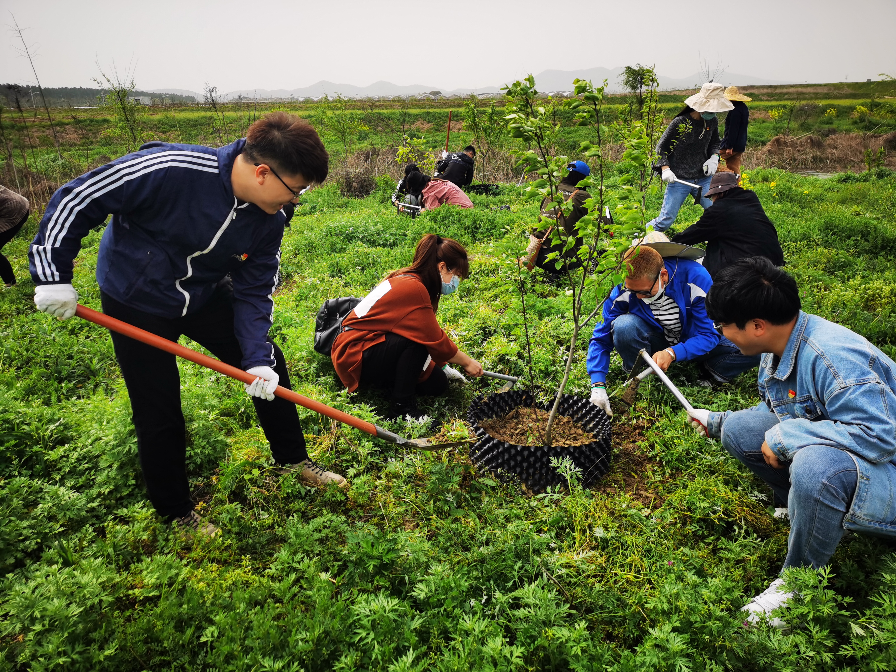 植树活动结束后,为养护地树立铭牌。“园艺百年,桃‘梨’满园”,今年是园艺建系100周年,长期以来,学院各党支部一直致力于将思想化为实际行动,将专业融入公益环保,鼓励全体党员将初心与使命同祖国的农业发展和生态文明紧紧相连。