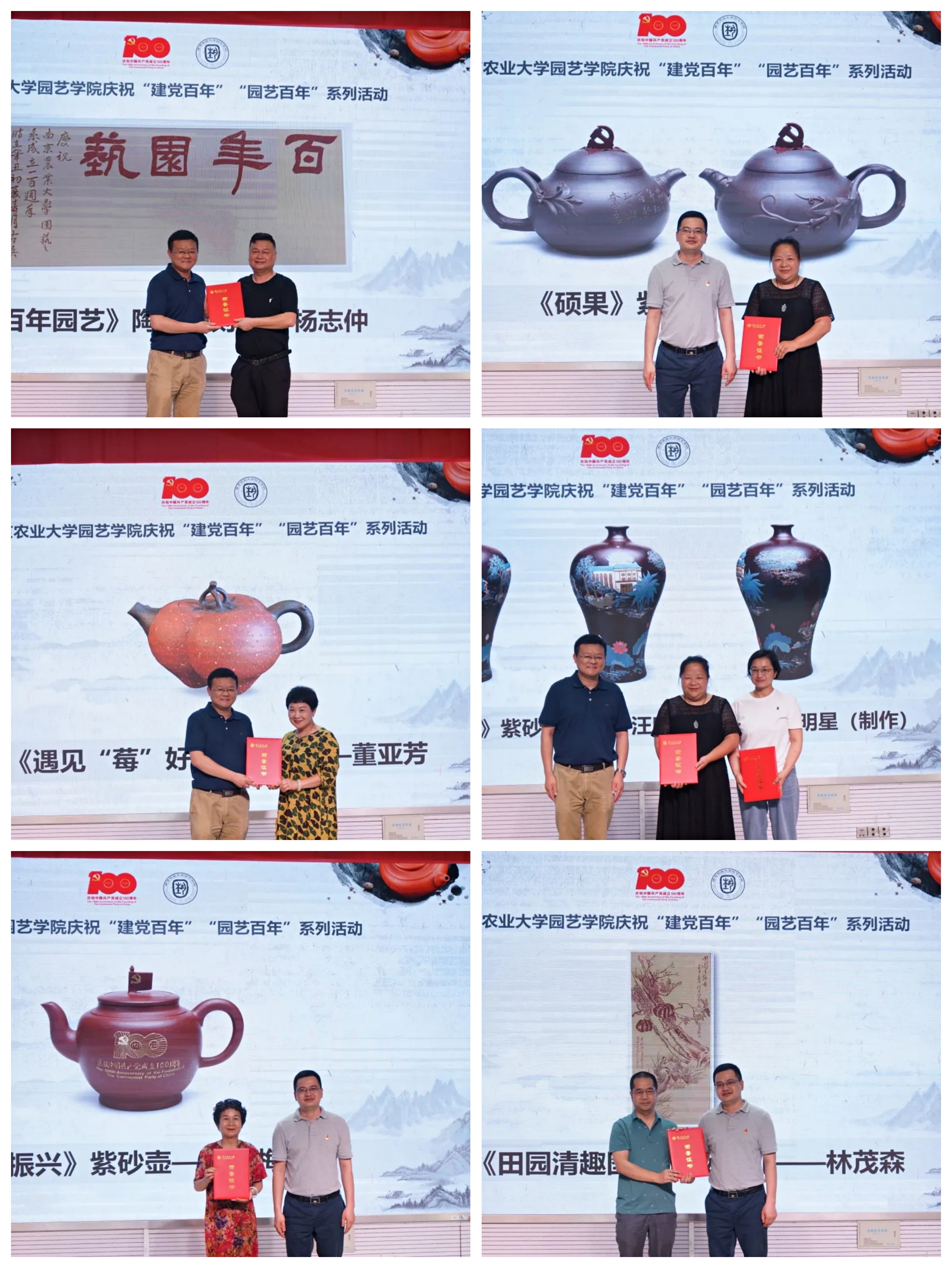 ,将此前与园艺师生党员共同创作的6件紫陶作品赠予南农园艺,为“建党百年”“园艺百年”献礼,这些作品不仅融入了党徽、建党100周年庆祝活动标识等党史学习教育元素,绘制了主楼等南农元素,还点缀了玫瑰白菜、菊花、梨果等园艺元素。在创作过程中,大家感受到做一把好壶、一件佳作的不易,更体会到“紫砂”这一独具匠心的非物质文化遗产的魅力所在。天天a片
