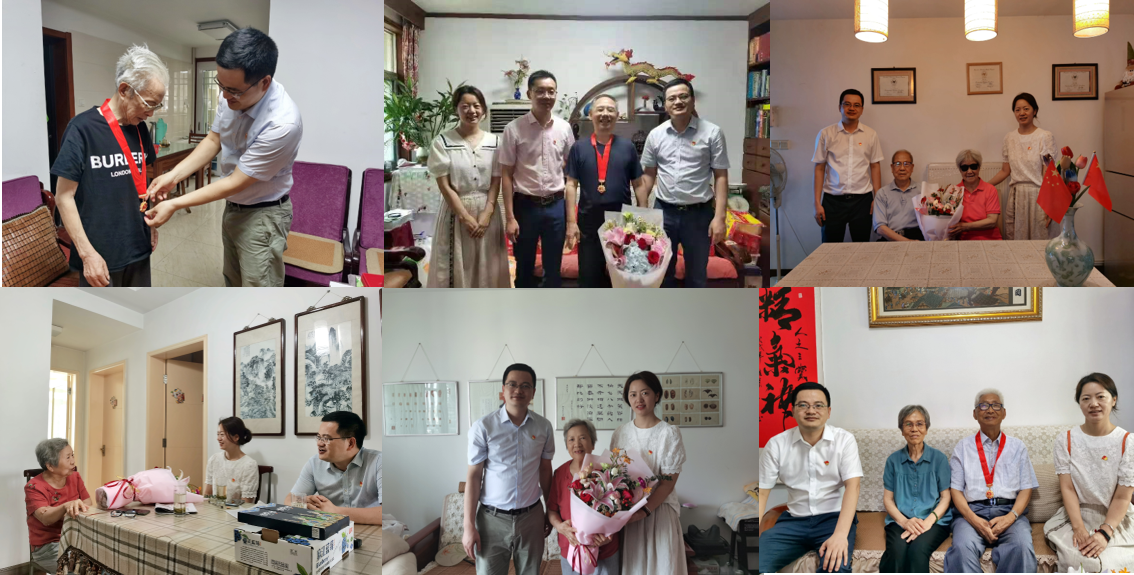 韩键带队来到老党员家中,为他们佩戴“光荣在党50年”纪念章并致以节日问候。慰问中,韩书记详细询问他们的身体健康、生活起居等情况,了解他们日常生活中困难及所需,交流了学院关工委相关工作,对他们为学院发展做出的贡献表示感谢。