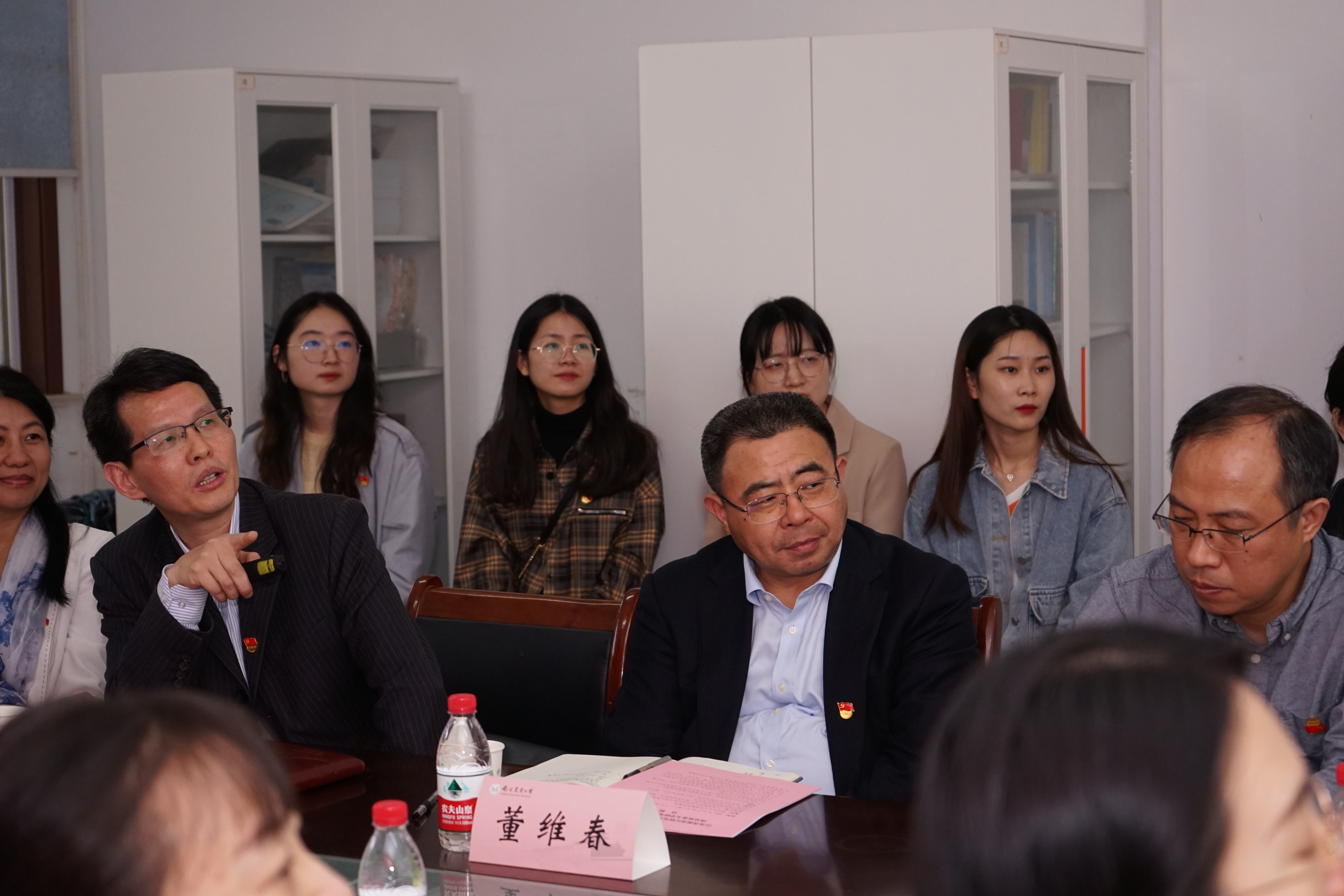 江苏省教育厅一级巡视员洪流,校党委常委、副校长董维春,省教育厅研究生处党支部书记李国荣及研究生处党支部党员、借调干部,校研究生院常副院长吴益东、研工部部长姚志友等党政领导及研究生院(部)党支部成员,天天a片
