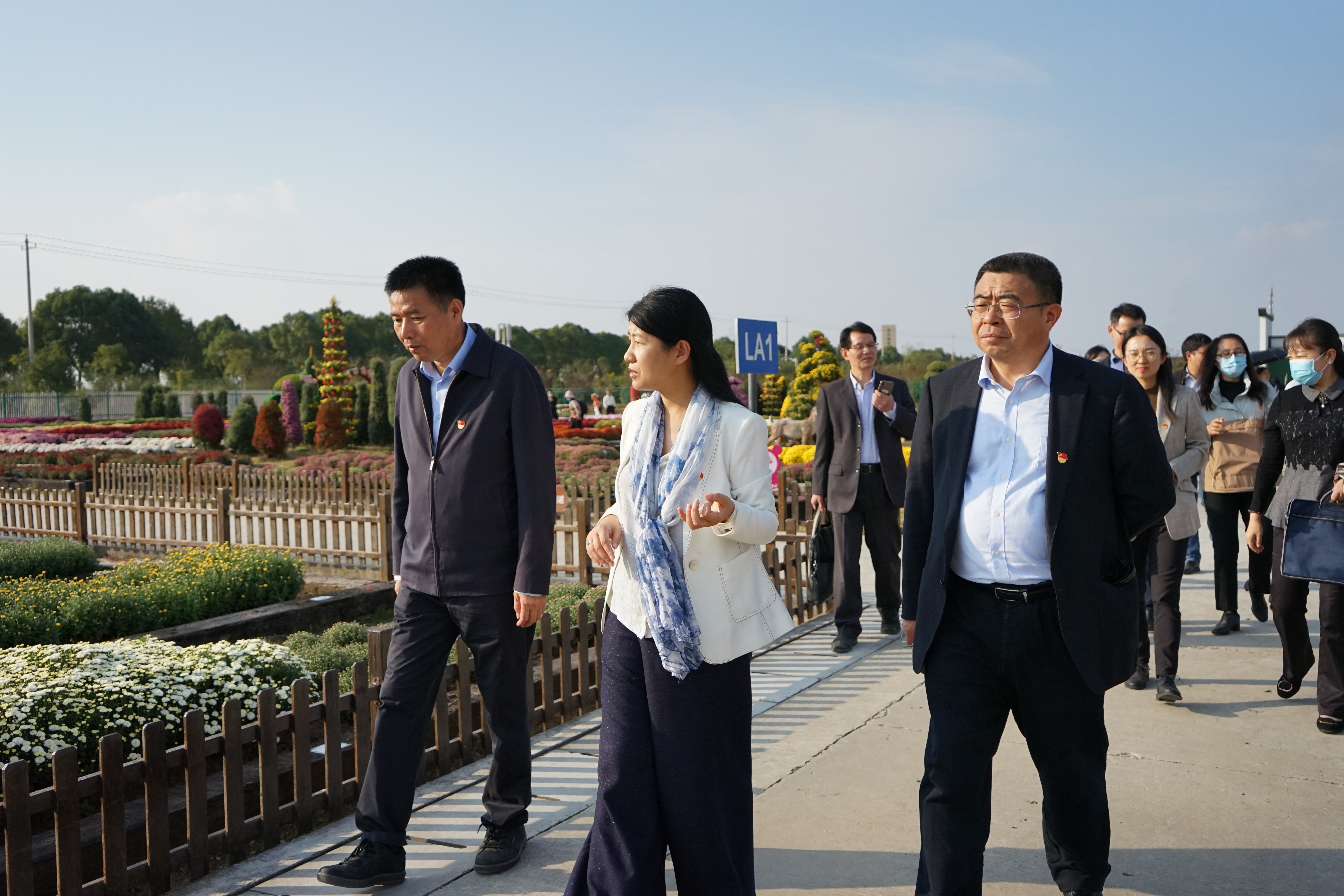 陈素梅带领大家参观了菊花基地,并就菊花种质资源收集、菊花造型技术、菊花应用价值及相关科研成果等内容向大家做详细介绍。
