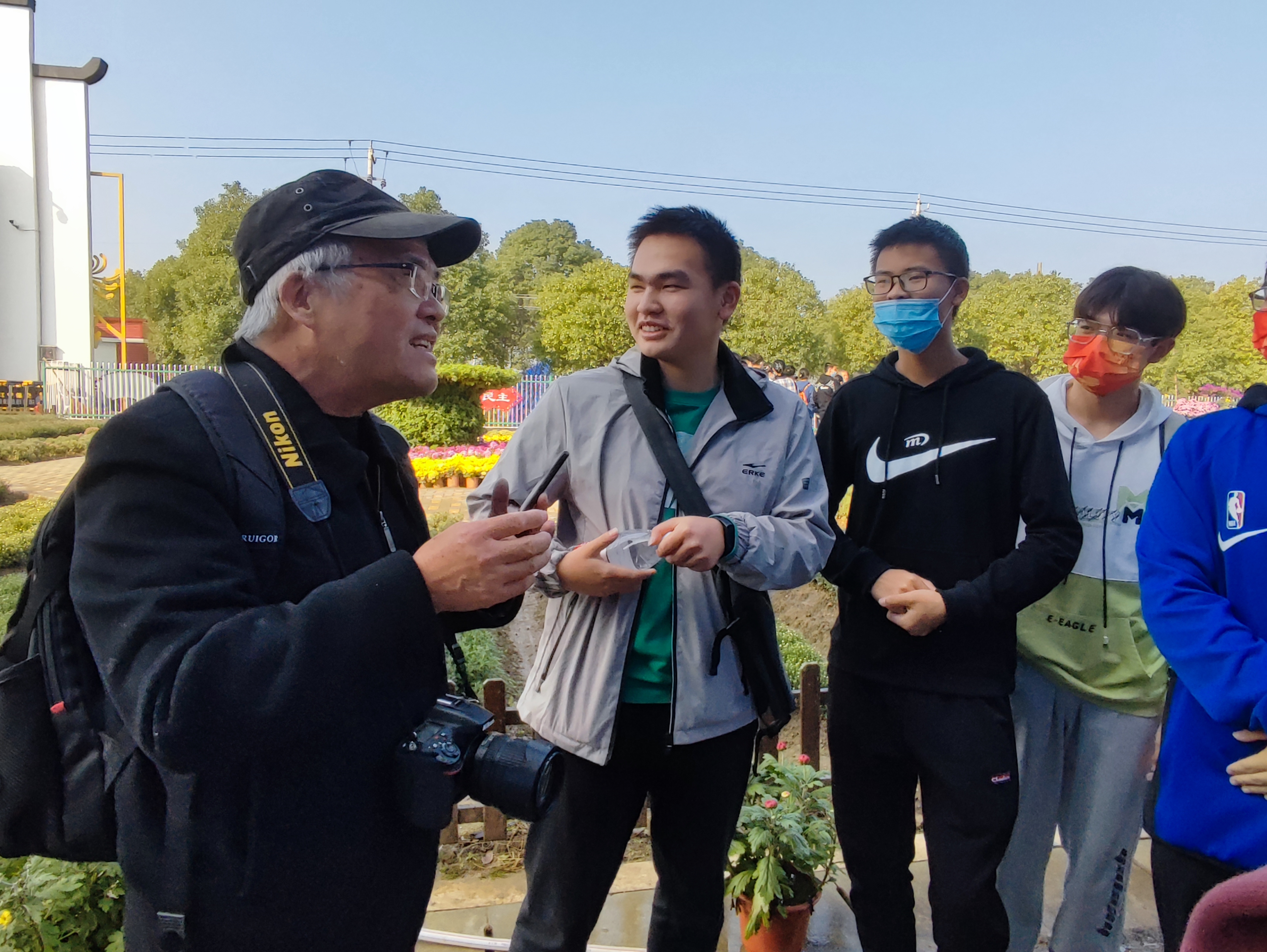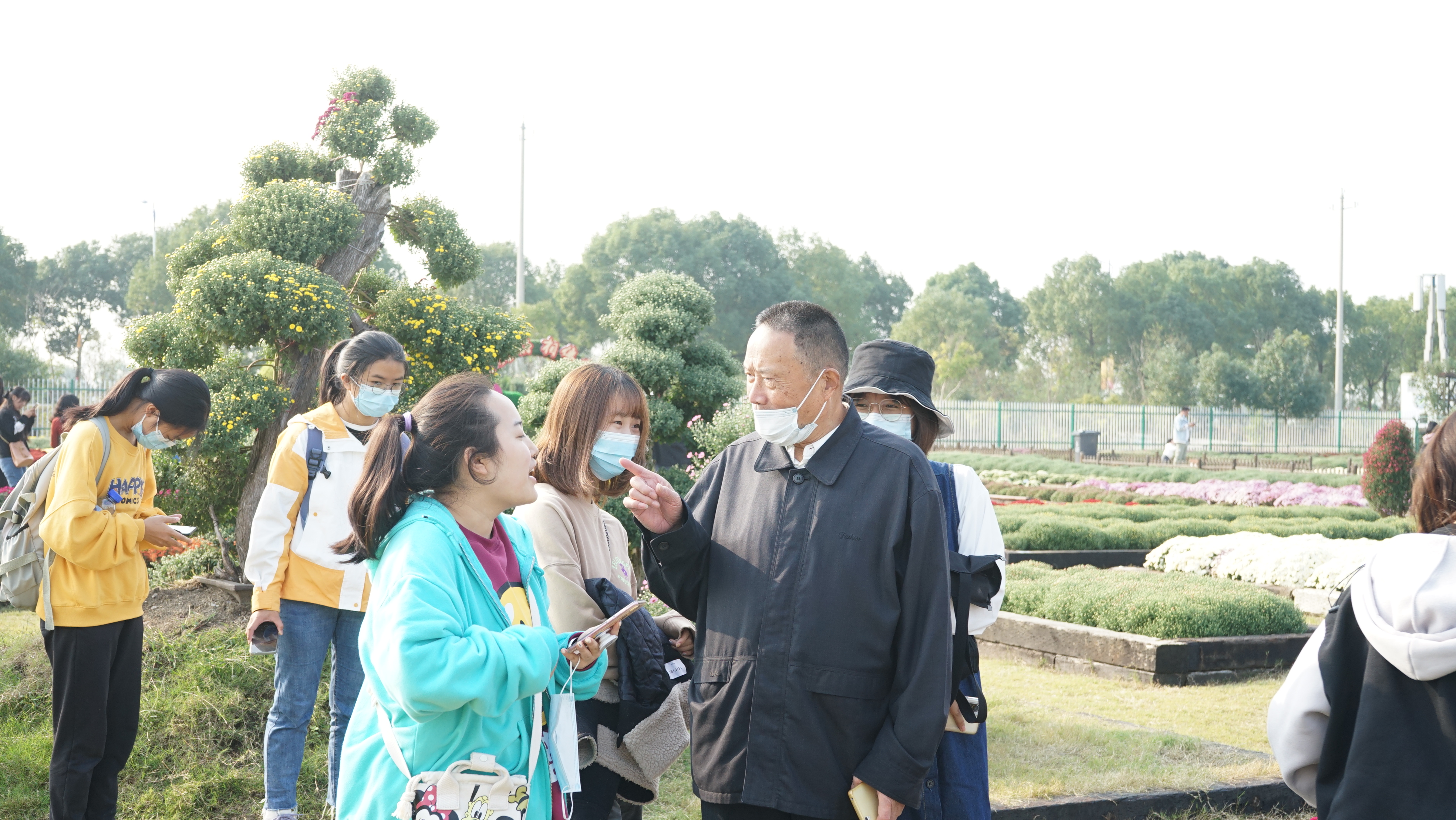 关工委老师、班主任、新同学,老中青三代园艺人同游菊展,一同欣赏,一同学习。班主任对专业知识的普及打破了同学们对于菊花的有限认知,关工委老师将实践与知识结合,亲自和同学们一起对菊花进行“零距离”观察,“面对面”研究,这不仅是知识的传承,更是将勤恳耕耘、拓展创新的科研精神传递给了新同学。