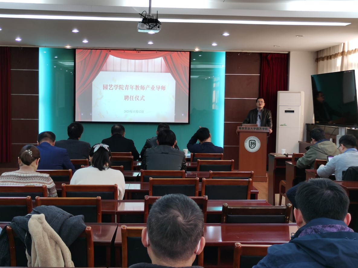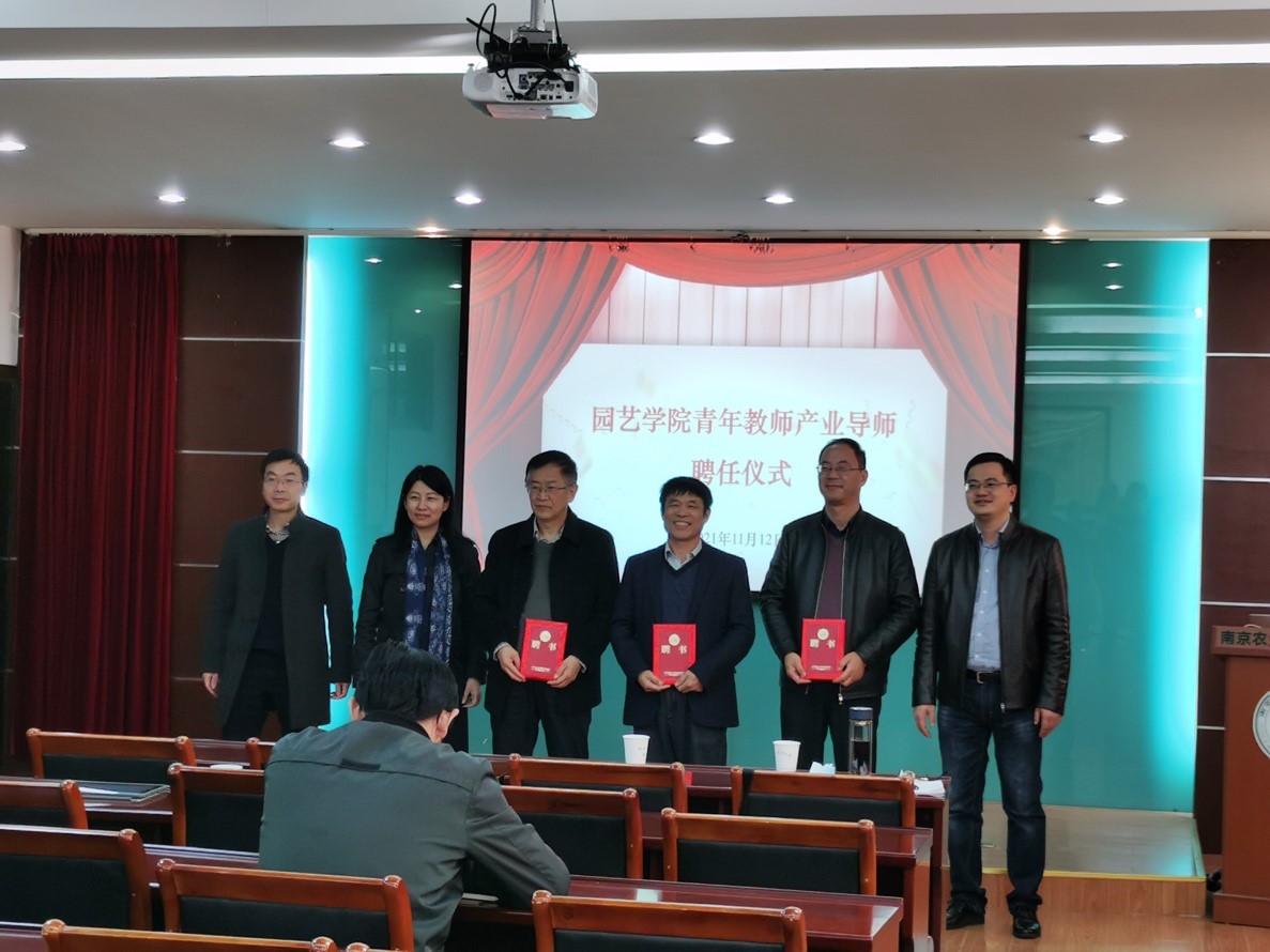 青年教师产业导师聘任仪式。产业导师张绍铃教授、郭世荣教授、房伟民教授,学院党委书记韩键、副院长陈素梅、张清海,学院青年教师50余人参加了本次仪式。