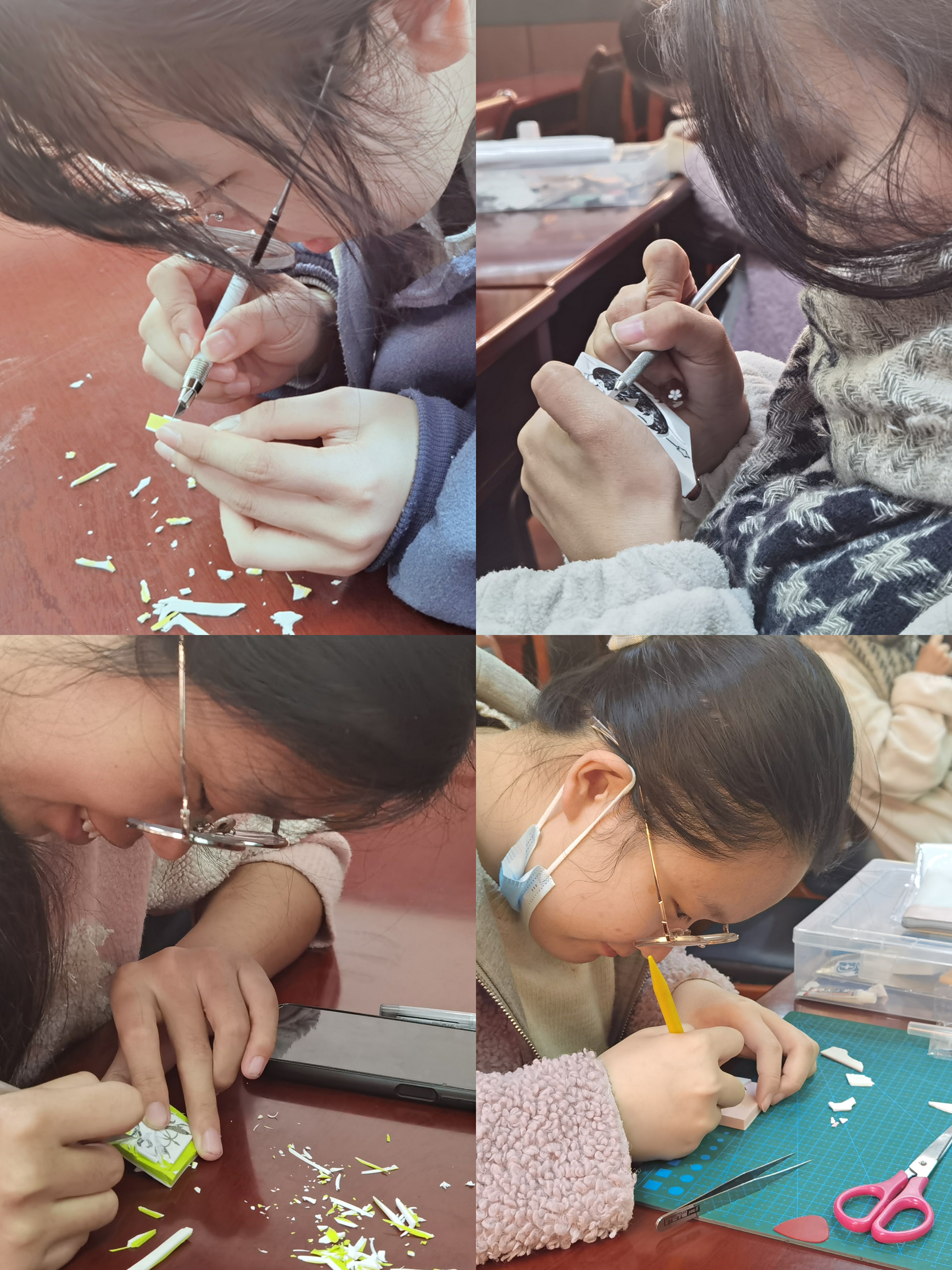 12月3日下午,天天a片 青野手工社在学院“精艺厅”举办橡皮章雕刻活动。橡皮章雕刻是当代年轻人非常喜欢的一类手工活动,一小块橡皮、一把刻刀和一点小心思,就能制作出有趣、独特的图章。在雕刻的过程中,时间仿佛停止,人们能完全沉浸其中,收获内心的平静和美好。