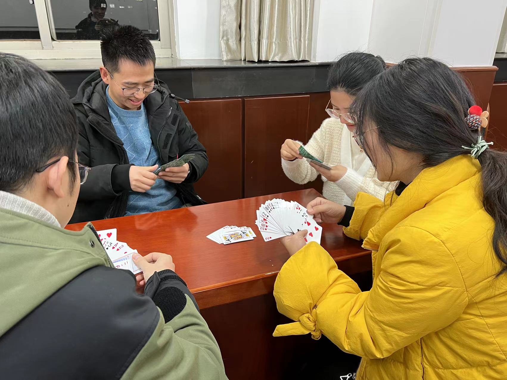 座谈会结束后便是大家期待的掼蛋比赛2.0,本次比赛采用自由组队形式,为教职工提供了一次难得的放松身心、促进各课题组交流的机会。