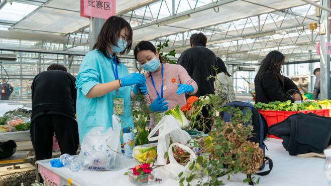 等单位承办的“百财玫瑰‘心系冬奥会 奥运添光彩’蔬菜花礼创意大赛”在校白马校区教学科研基地举行,为2022年北京冬奥会献礼添彩。