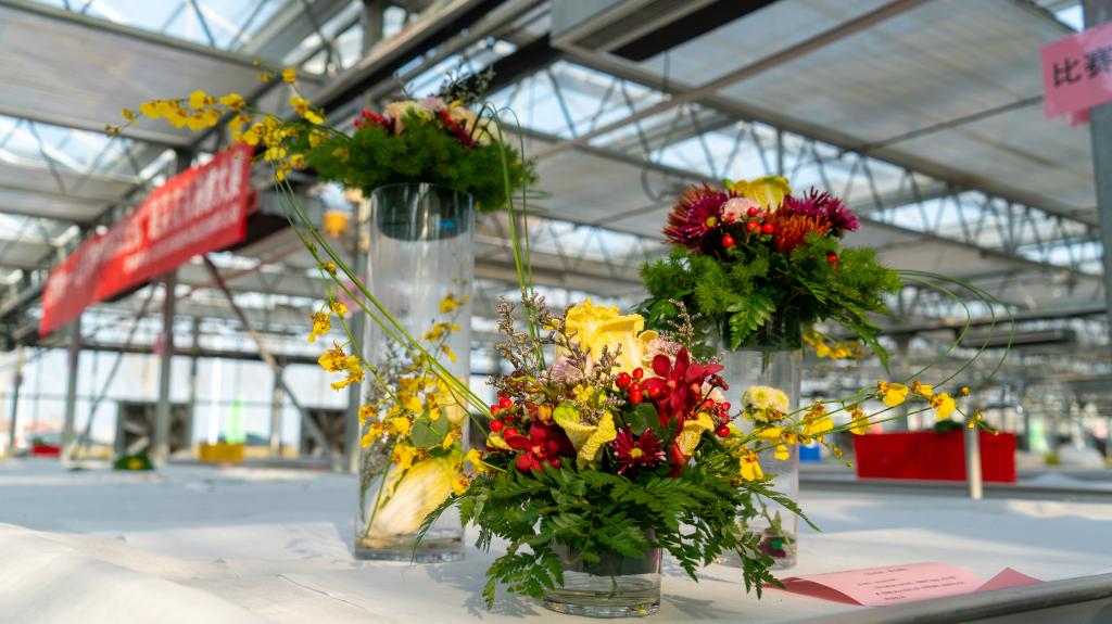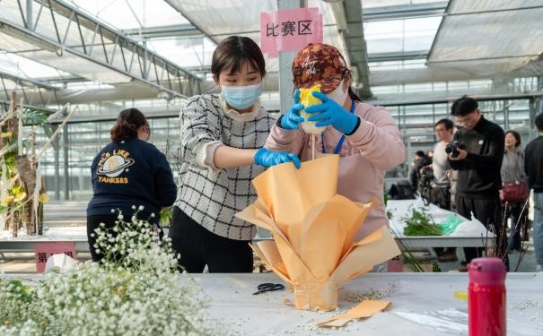 、江苏农林职业技术学院、苏州农业职业技术学院、金陵科技学院等园艺科技工作者、园艺研究生、本科生等44支参赛团队,利用“黄玫瑰”白菜同台制作“百财玫瑰”蔬菜花礼,为北京冬奥会加油,祝奥运健儿好运。