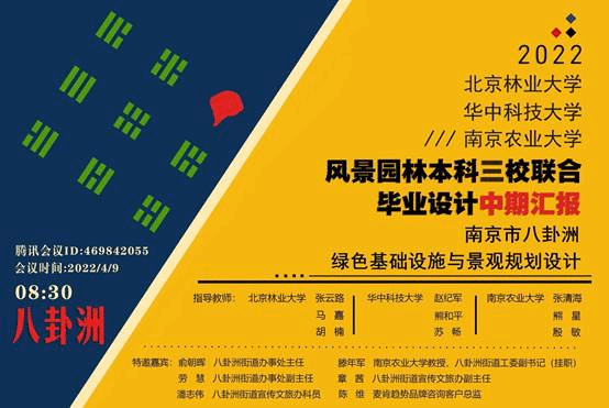 4月9日上午,由南京农业大学联合北京林业大学、华中科技大学共同参与的联合毕业设计“南京市八卦洲绿色基础设施与景观规划设计”中期汇报于线上顺利举行。来自三所院校的33位师生和南京八卦洲街道办事处主任余朝晖、街道工委副书记天天a片