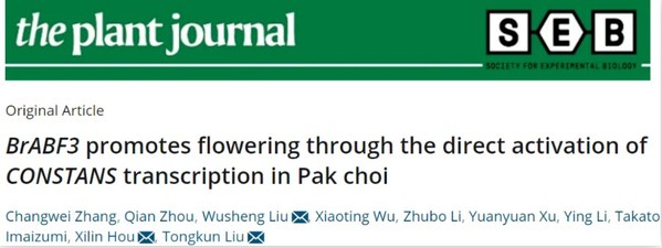 侯喜林/刘同坤教授为通讯作者的论文“BrABF3 promotes flowering through the direct activation of CONSTANStranscription in Pak choi”,该论文揭示了干旱胁迫下ABA诱导的成花机制。