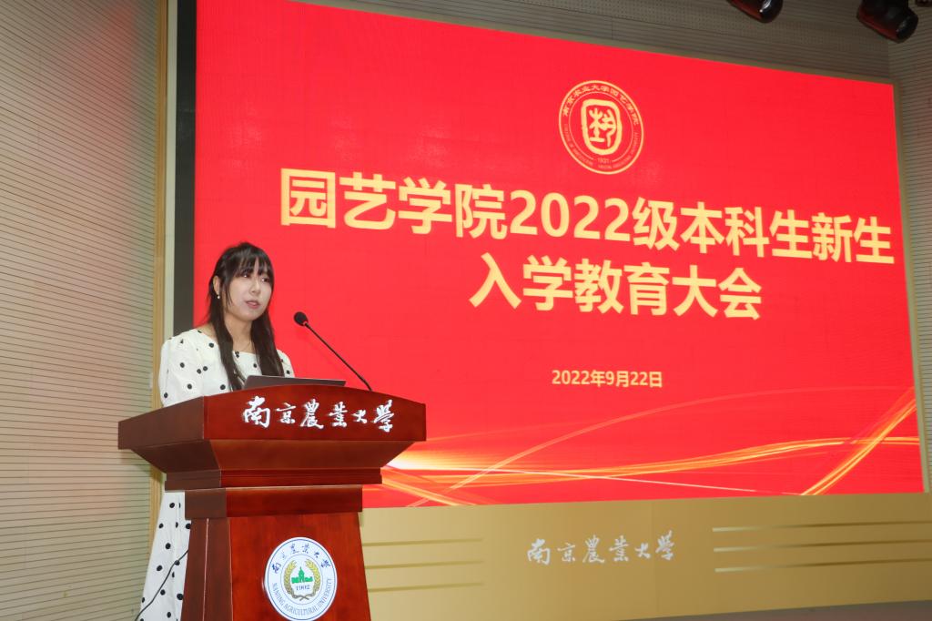 的创业史、砥砺史、贡献史,并用往届优秀学生事迹为例,勉励新生自觉担起园艺责任,赓续农耕精神,青春奉献祖国,并对新生提出三点殷切期望:树立远大的理想抱负、追求卓越;明确发展目标、脚踏实地奋斗;勇于克服困难,尽早适应大学生活,启航新征程。