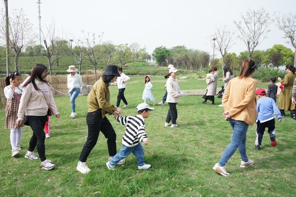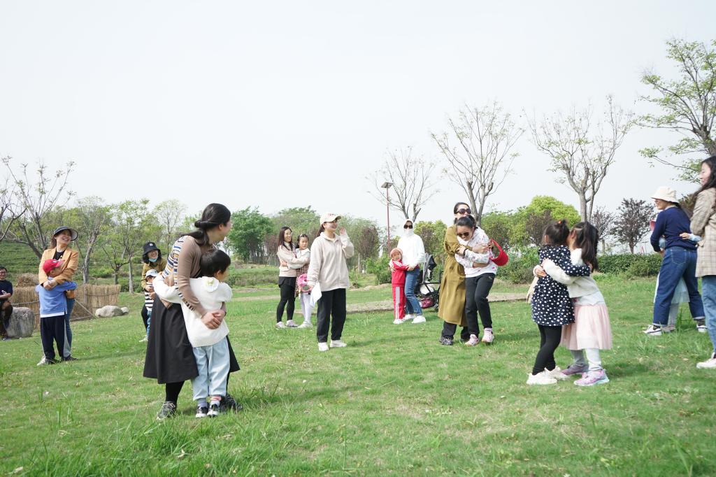 草坪亲子游戏环节,大小朋友手拉着手围成一个大圈,大家放下平时工作、学习或生活中的烦恼,开开心心地玩起了“茶叶抱抱团”游戏。大家时而神秘的探讨计策,时而紧张的奔跑找人,时而放松的开怀大笑,都沉浸在欢乐的游戏之中。