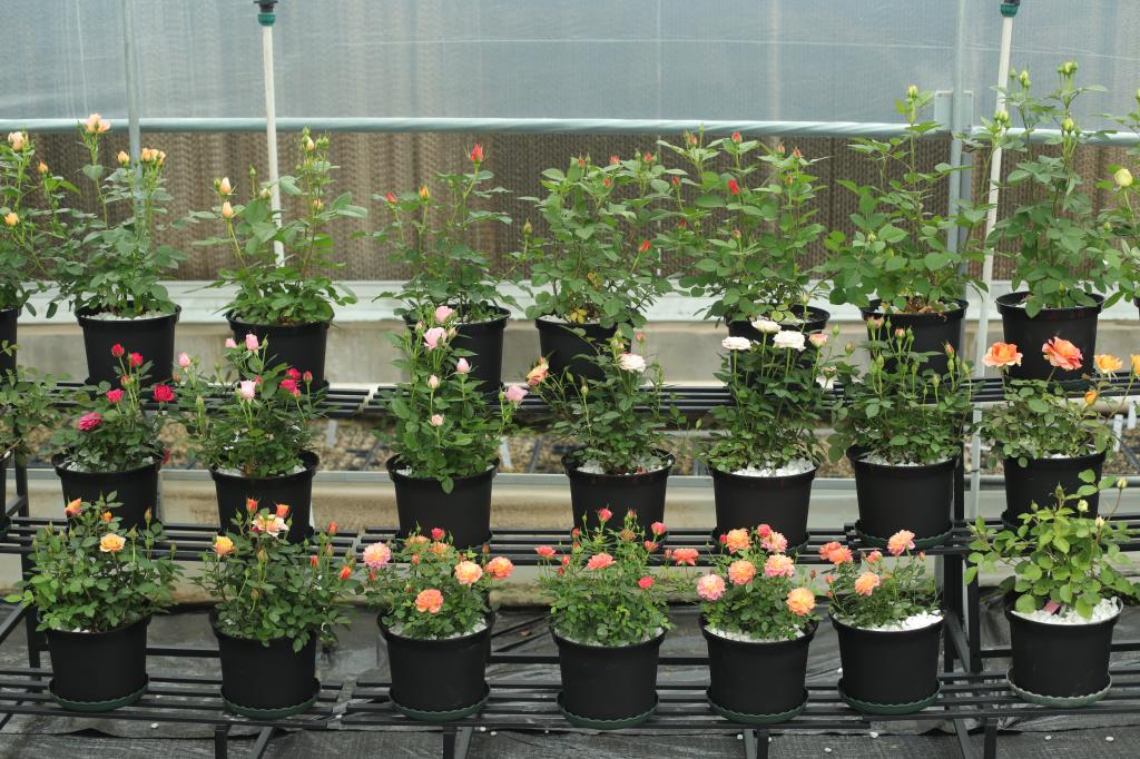 首届八卦洲月季展现场的盆栽月季品种展示