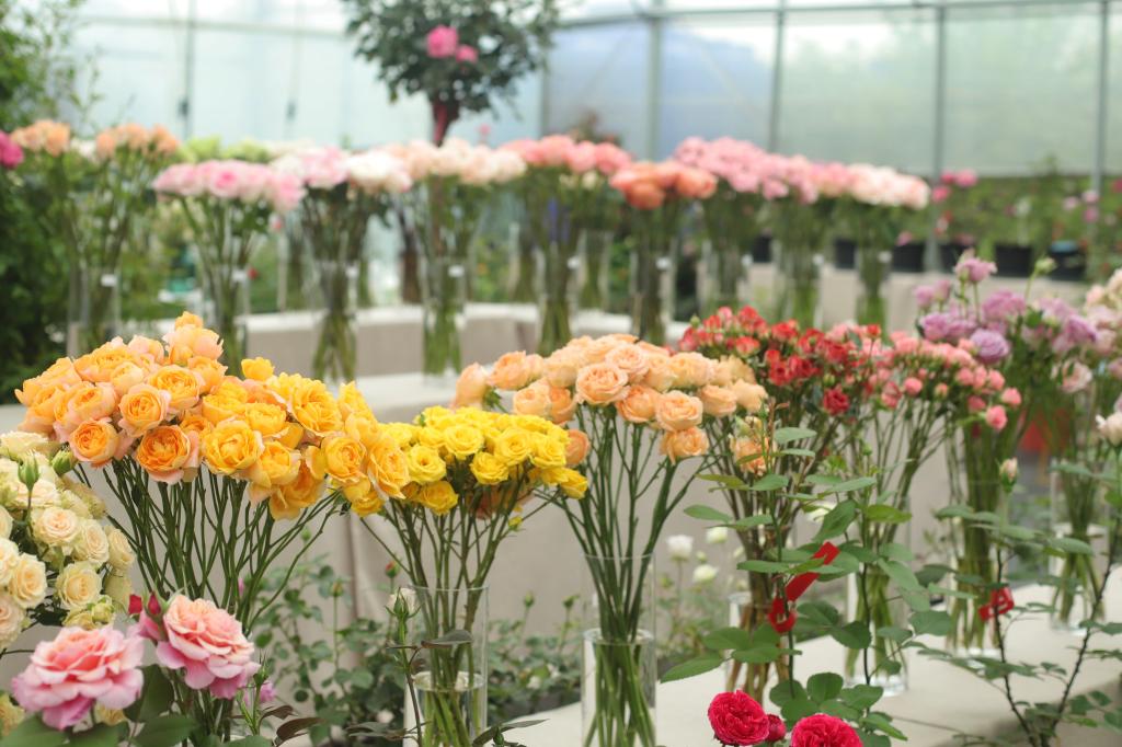 首届八卦洲月季展现场的切花月季品种展示