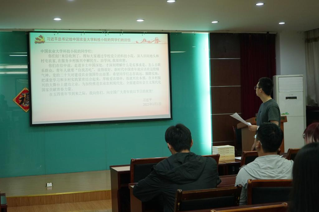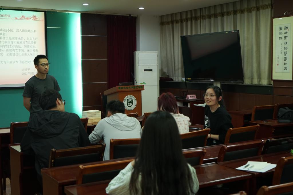 支部副书记周明星针对科技小院的概念、模式、工作思路与成果进行了详细的讲解,并分享了自己的学习心得,他认为,作为新时代的农科生,我们要扎根基层、勇于实践创新,为乡村振兴贡献自己的力量。