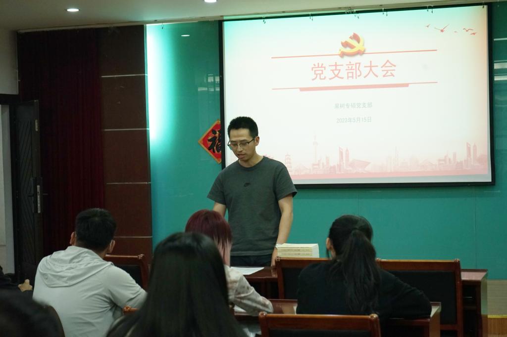 2023年5月15日晚19:00,果树专硕党支部召开学习贯彻习近平新时代中国特色社会主义思想主题教育动员大会,支部20名党员和3名积极分子参与学习。