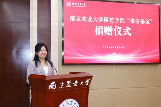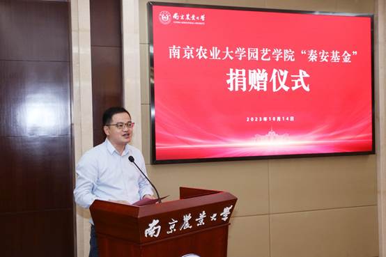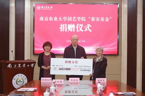 党委书记韩健表示,两位校友均是工薪阶层,几十年如一日勤勉工作、奋发作为,崇尚简朴,勤俭节约,在各自的工作岗位取得了突出成绩、做出了重要贡献,生动践行了“诚朴勤仁”的校训精神。他们一直心系母校、感恩母校培养和老师教诲,本次在学校设立“秦安基金”,慷慨无私捐赠,回馈母校,为师生、校友树立了榜样,传递了巨大的爱校荣校能量。学院一定以两位校友为榜样,在学校的正确领导下、在广大校友的支持帮助下,奋发图强、锐意进取,努力培养卓越园艺人才、创新园艺科技成果、服务城乡居民高品质生活,实现园艺让生活更美好的奋斗目标。