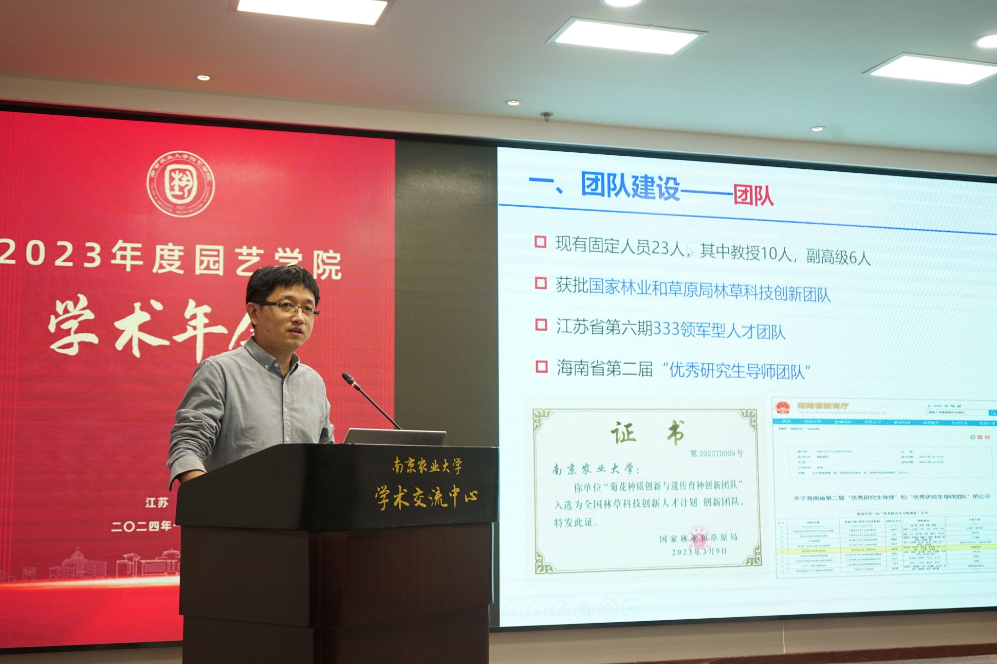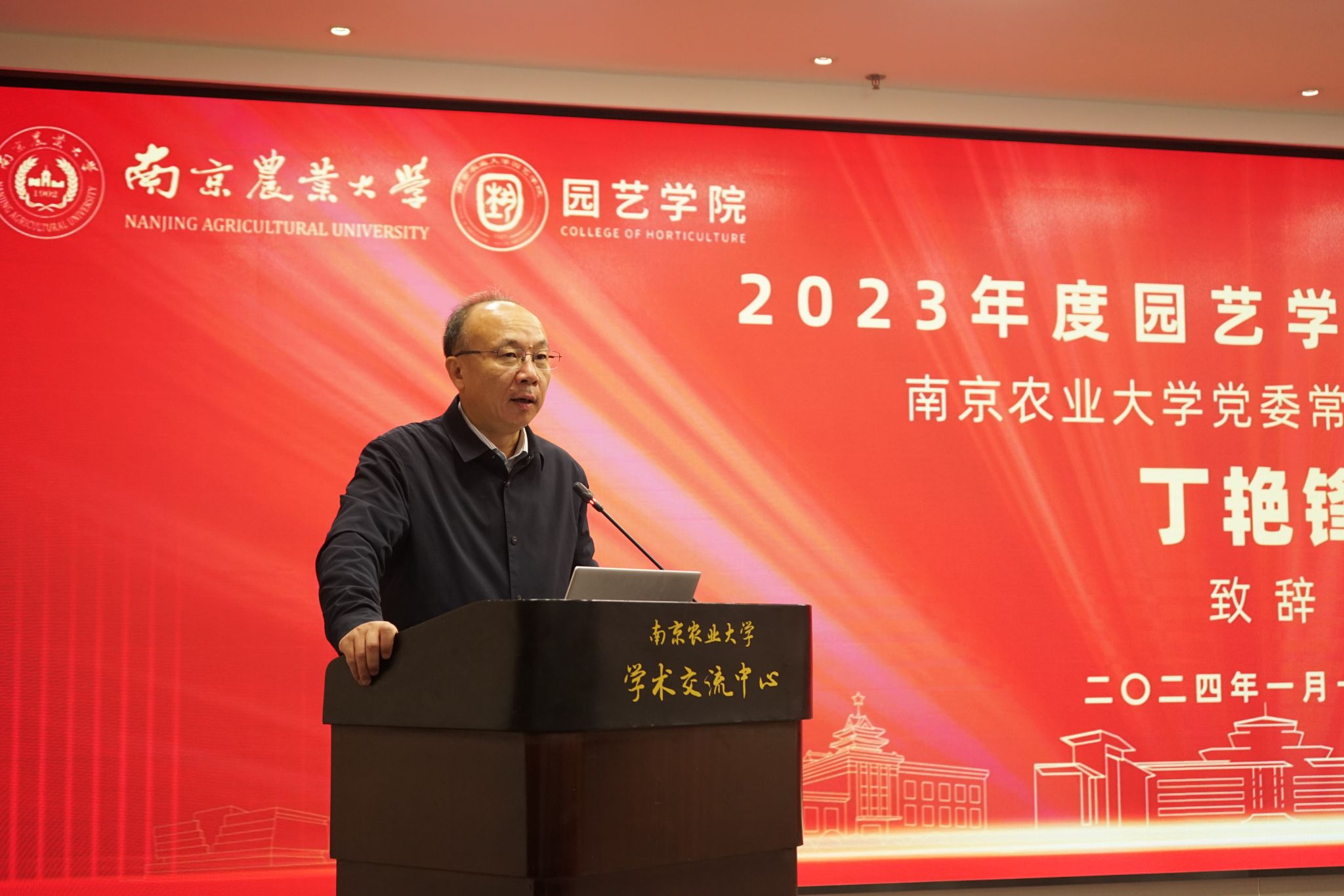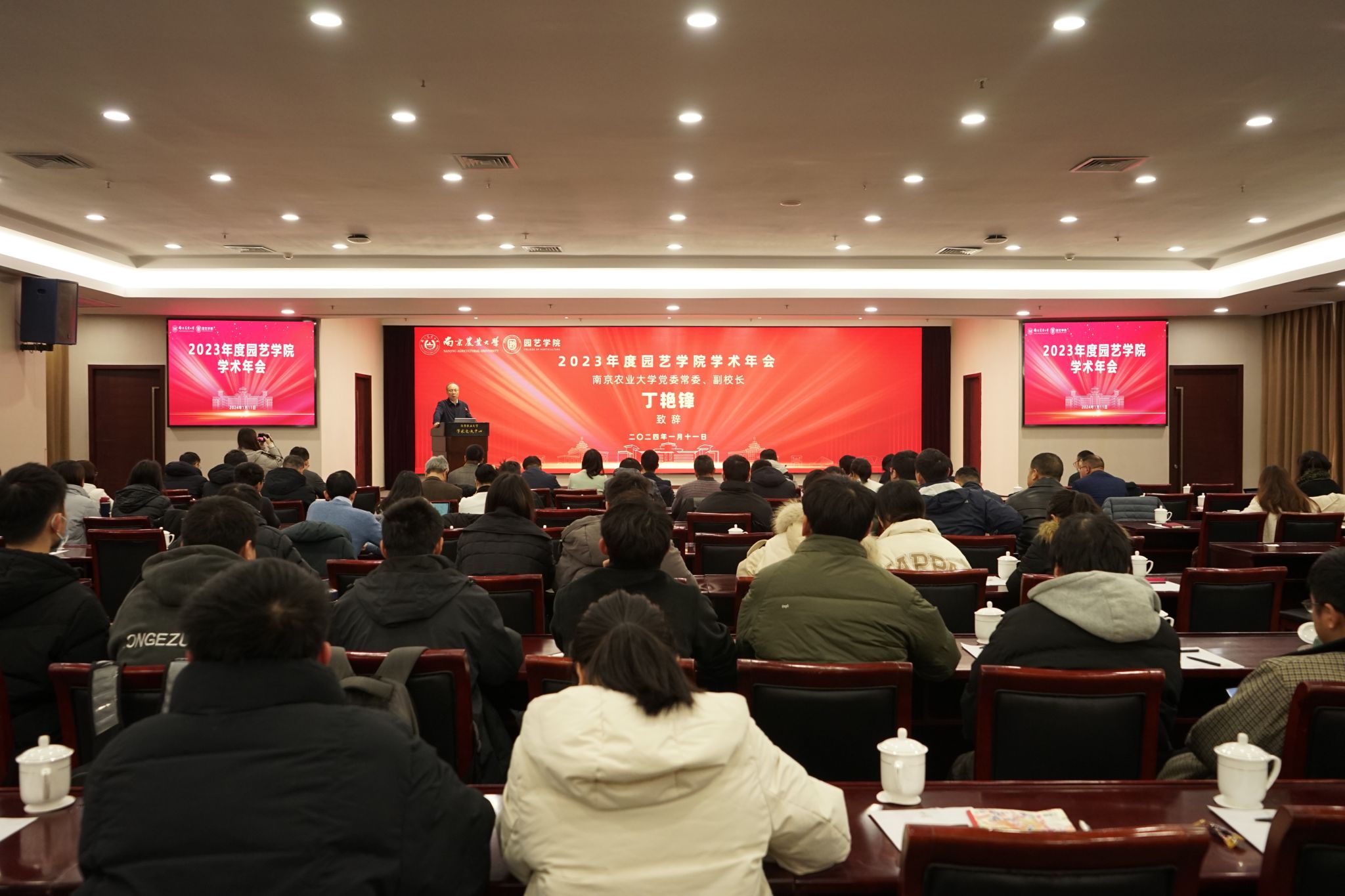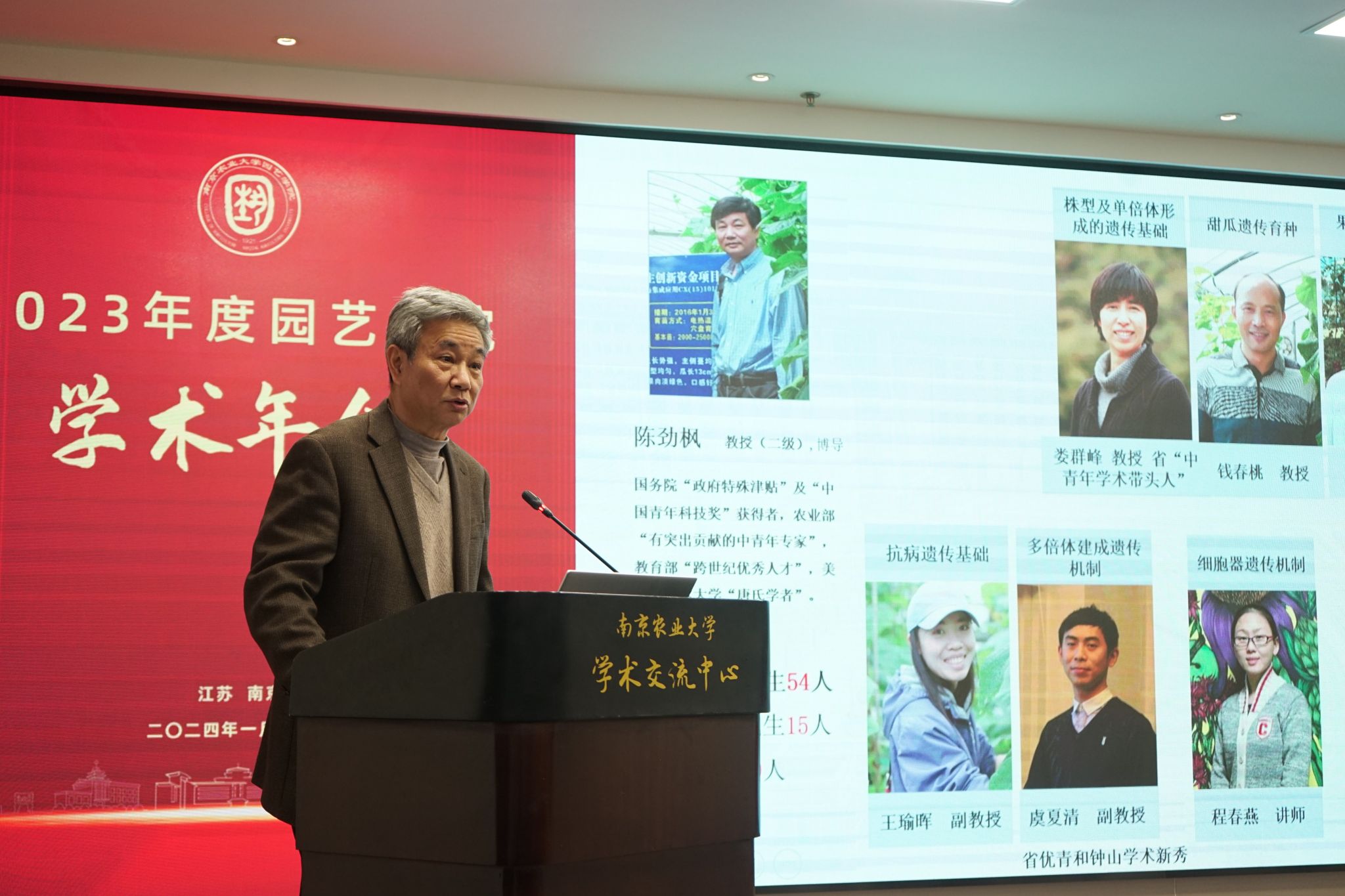 学术交流中心六楼报告厅举行。校党委常委、副校长丁艳锋参加会议并致辞,校人事处处长邹建文、科学研究院副院长葛焱、社会合作处副处长严瑾应邀作专题报告。园艺院领导班子成员、全体教职工以及部分研究生参加会议。会议由园艺学党委书记韩健主持。