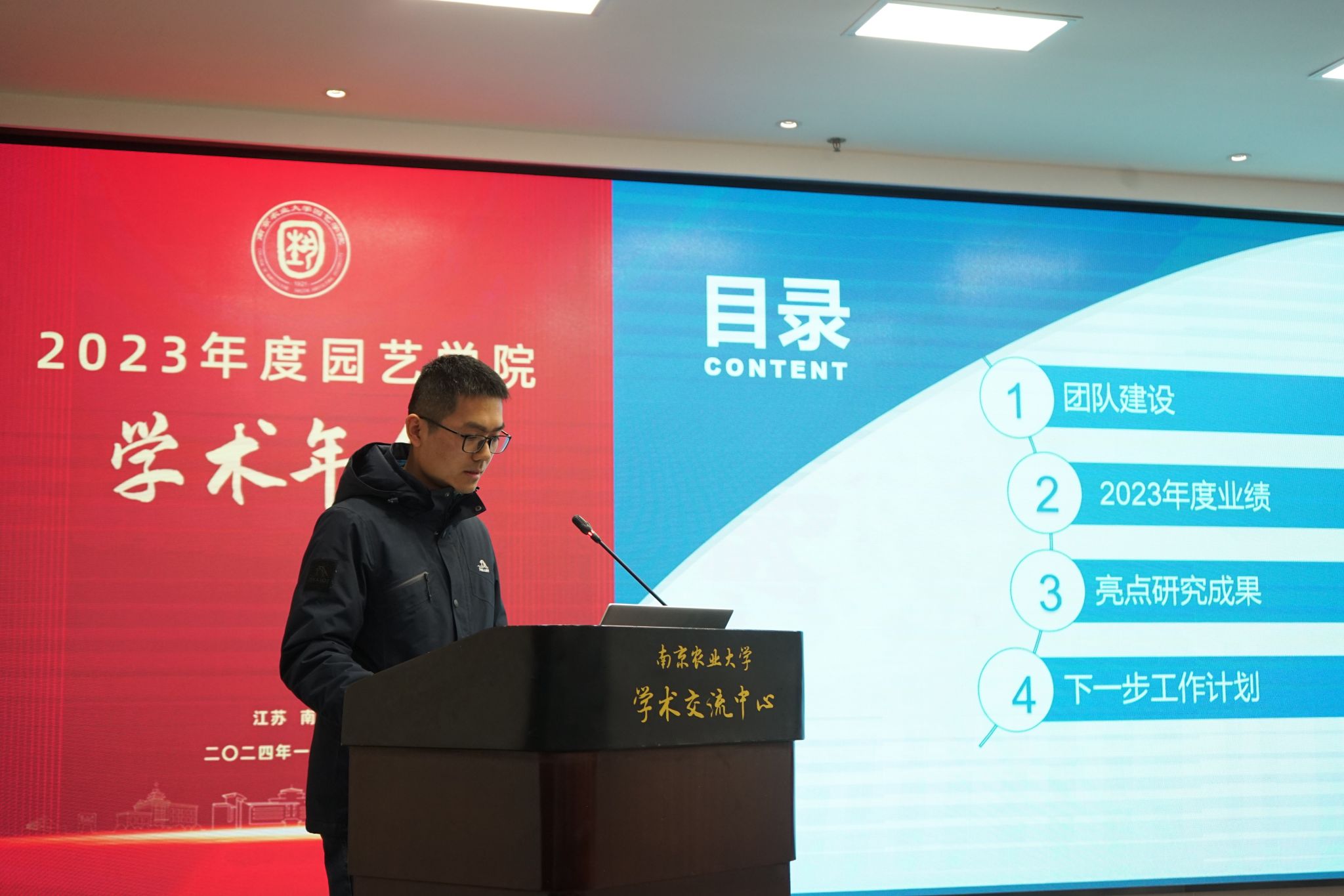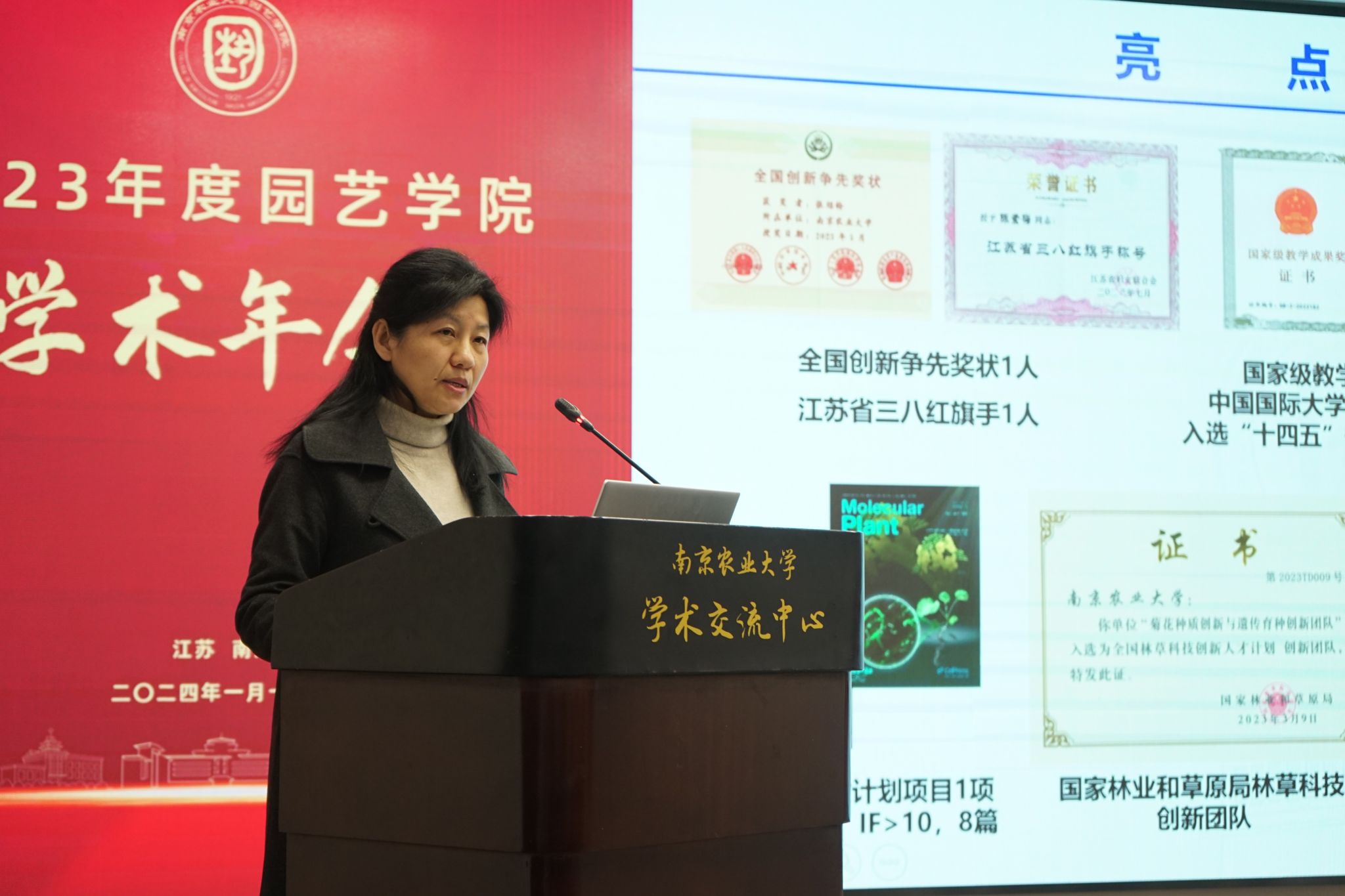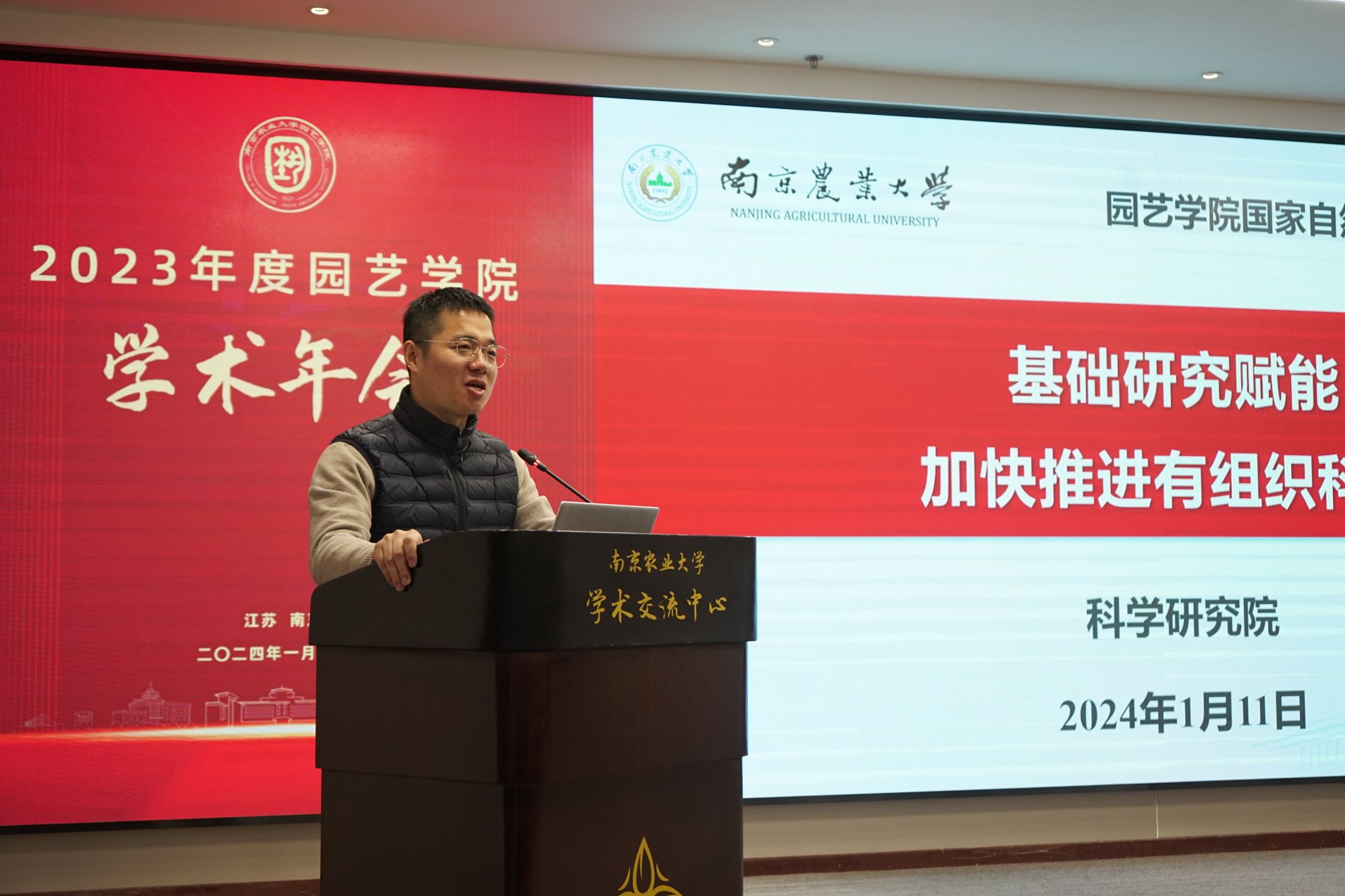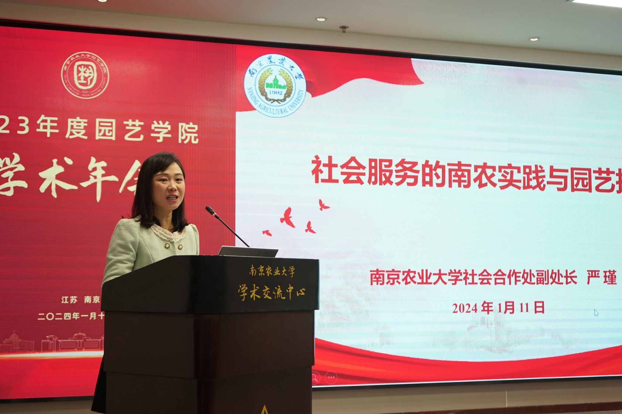 学术交流中心六楼报告厅举行。校党委常委、副校长丁艳锋参加会议并致辞,校人事处处长邹建文、科学研究院副院长葛焱、社会合作处副处长严瑾应邀作专题报告。园艺院领导班子成员、全体教职工以及部分研究生参加会议。会议由园艺学党委书记韩健主持。