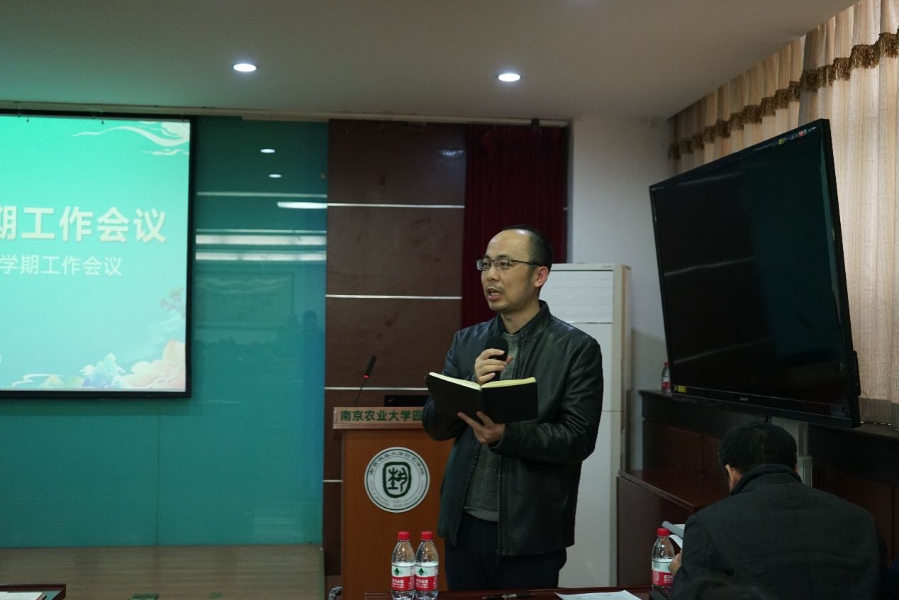 随后,韩健传达了学校“新时代南农精神”大讨论动员大会的会议精神,做了师德师风警示教育,重点强调了学校学院党代会、本科教育教学审核评估、新校区搬迁、目标管理考核任务落实、学科建设和“新时代南农精神”大讨论等重点工作。他希望全体教师一是要提高政治站位、增进团结协作;二是要加强理论学习、找准努力方向;三是要紧抓发展机遇,服务国家战略;四是严格作风纪律,实现安全发展。他表示新的一年任重道远,希望全院师生,上下一心,锚定目标,发扬院训精神,为学院高质量发展建言献策、贡献智慧和力量,以优异成绩迎接学校第十三次党代会召开。