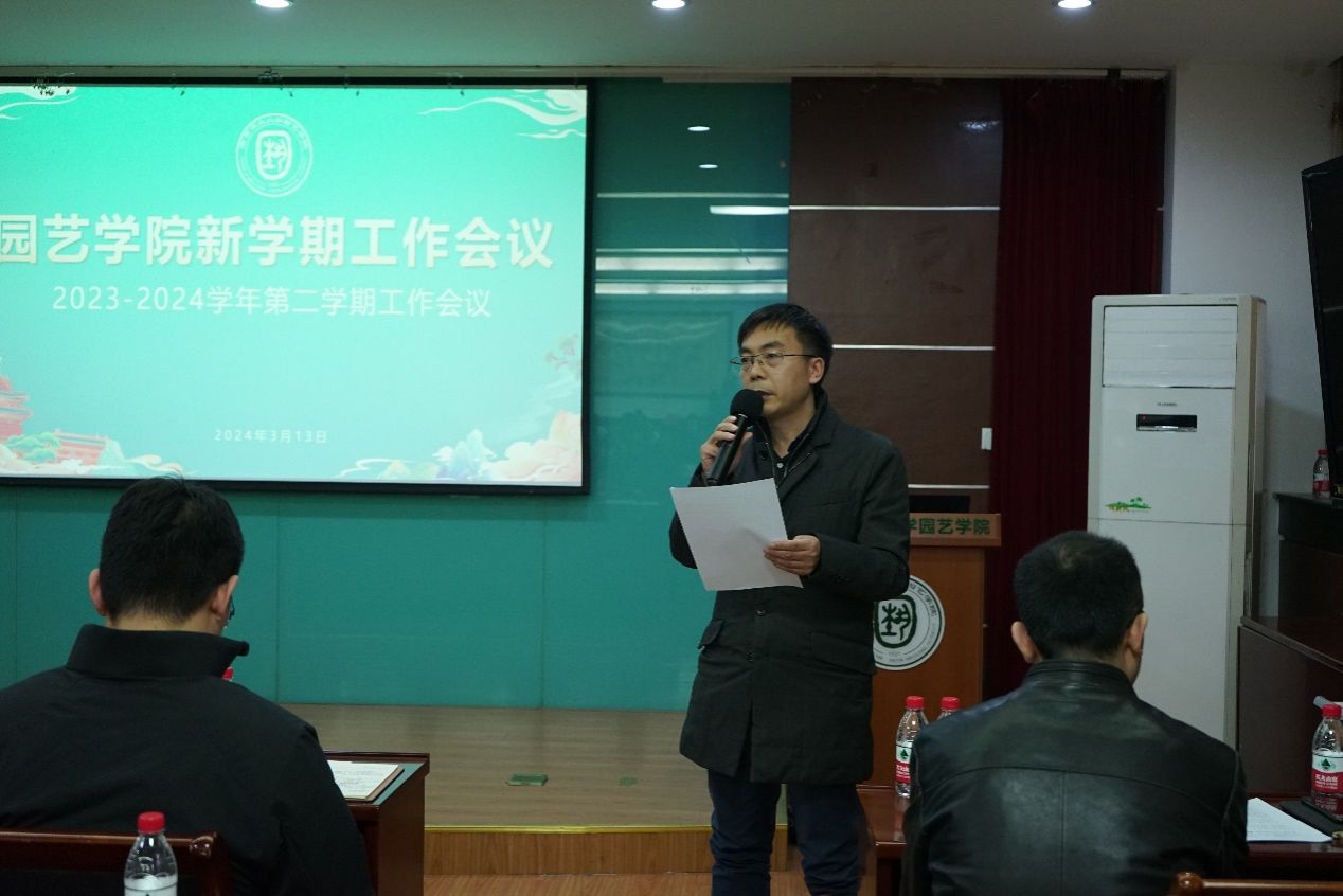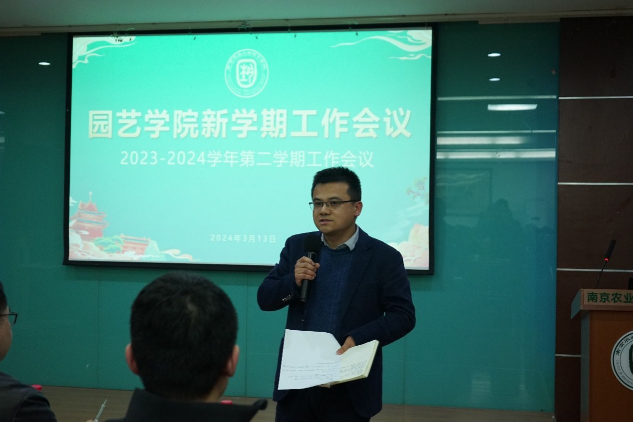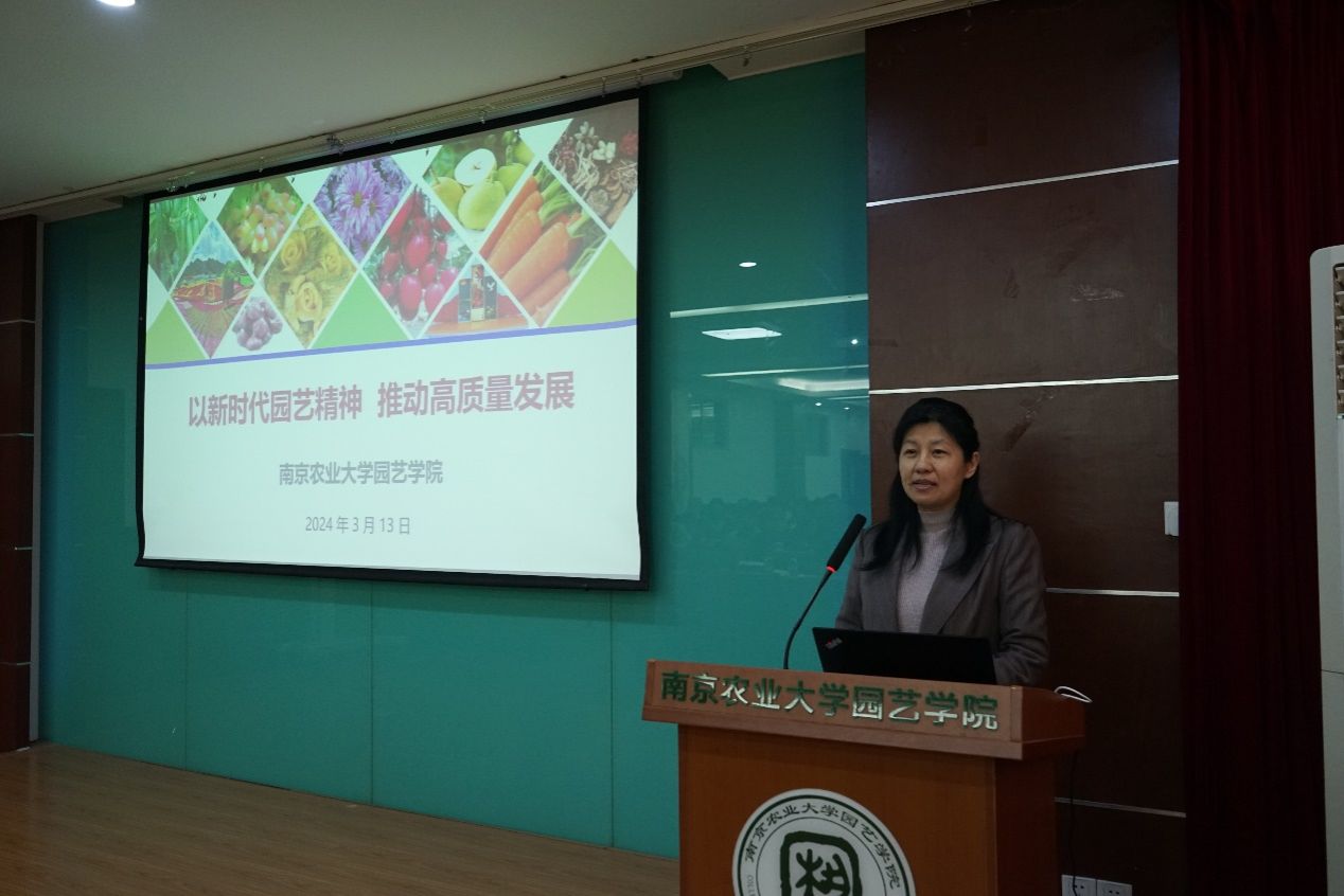 院长陈素梅作了题为《以新时代园艺精神 推动高质量发展》报告,围绕“抢抓机遇启新程、实干笃行建新功、组织保障举新措”三个维度进行了全面阐述。她首先提出,面向国家战略产业行业需求、面向”新生态位”、面向开放共享现代化新校区、面向高标准科创平台四个新使命、机遇,“园艺何为”的命题激发思考。随后她从2024年度学校目标考核指标任务和江苏省优势学科建设两项重大任务,党建思政、人才培养、师资队伍建设、科学研究、学科建设、国际合作与交流、社会服务等十项重点工作,全面部署了学院新学期重点工作。她表示,要以新校区搬迁为契机,聚焦学校“十四五”规划和学院可持续发展建设目标,把牢发展,抢抓机遇,改善“硬条件"的同时,提升"软实力",凝聚共识、形成合力,在新的起点上推动学院更高质量发展。