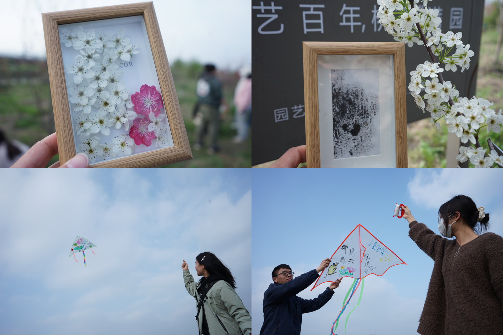师生党员代表就曾来到此地,种下了“园艺师生专属责任田”,而在今年,这片果园也到了春季修剪的时候,大家同步拿起修枝剪与锯子,运用自己的专业知识对园地内的果树进行修剪“美容”,锻炼了自己专业技能的同时,也让树木的生长更有活力。同学们还就地取材,用宣纸、墨水,结合传统拓印方法,去采集树木的纹理将其拓印在宣纸之上,感受它成长的痕迹,还有同学利用修剪后的枝条和花朵拼凑出一幅幅美丽画卷,定格这一刻的自然之美。
