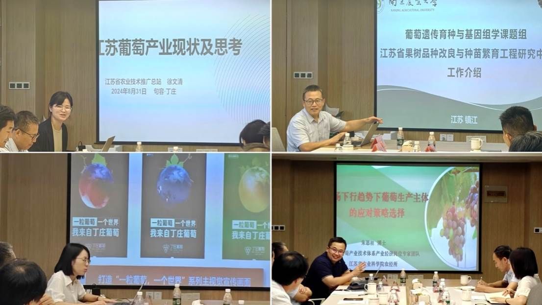 2024年8月31日下午,由江苏省园艺学会、句容丁庄葡萄产业研究院、江苏省果树品种改良与种苗繁育工程研究中心联合主办的“江苏省葡萄产学研交流与座谈会——暨句容丁庄葡萄产业研究院葡萄产业发展讨论会”在江苏省句容市茅山镇丁庄村召开,来自全省高校与研究单位的30余名葡萄学者参加了会议。我院姚志友书记到会并讲话。姚志友书记并在接受《镇江新闻》采访中表示,“我们将借助这次的研讨会,加强团队与地方葡萄产业的进一步合作,围绕葡萄产业的需求,特别是农民在高效栽培、品质提升等方面的一些问题,进一步加强研究、进一步加强合作。”