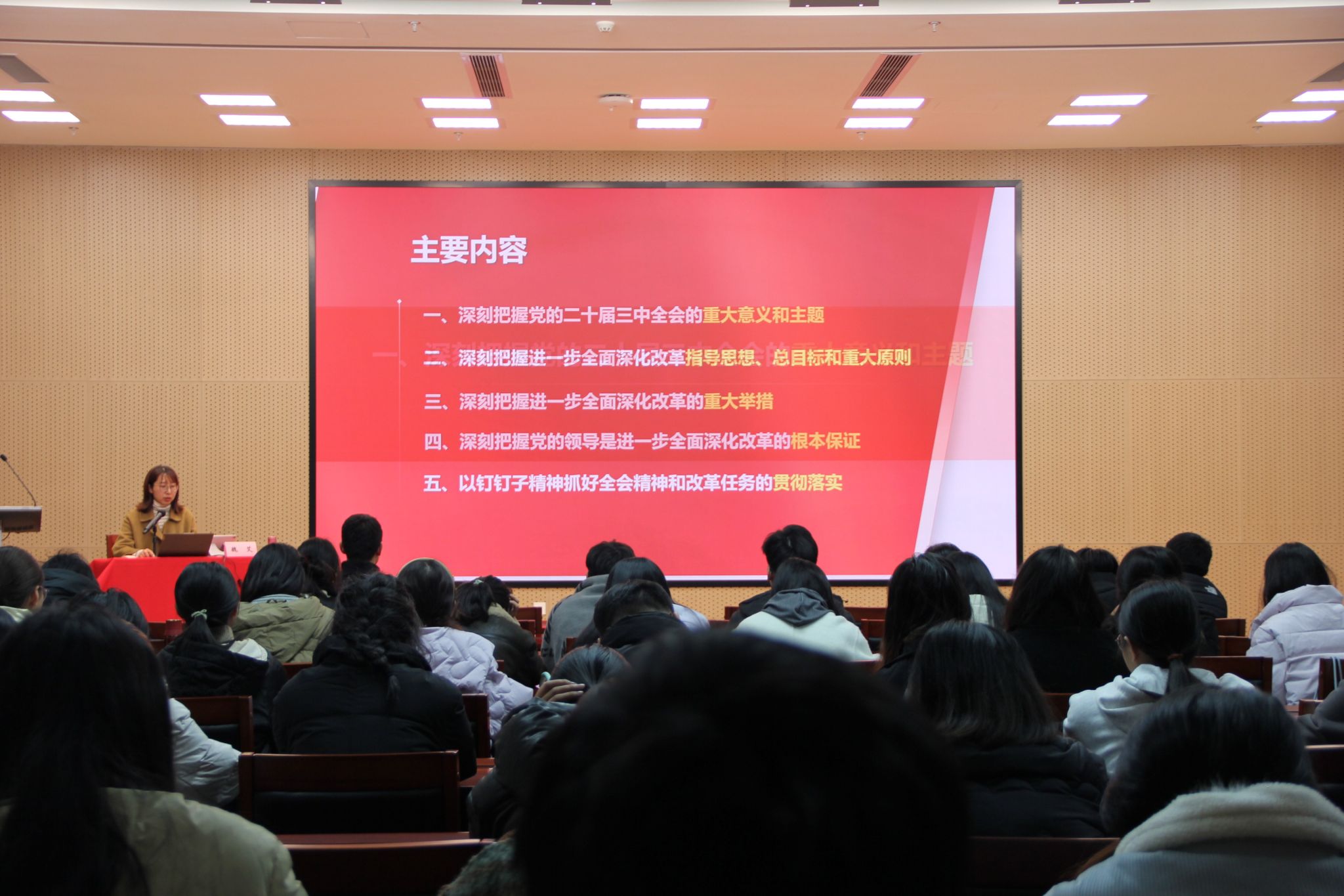宣讲会上,魏艾老师围绕党的二十届三中全会的重大意义、主要内容和精神实质进行了系统阐述。她强调,党的二十届三中全会是在以中国式现代化全面推进强国建设、民族复兴伟业的关键时期召开的一次十分重要的会议,既是党的十八届三中全会以来全面深化改革的实践续篇,也是新征程推进中国式现代化的时代新篇,具有重大的历史和现实意义。魏艾老师结合天天a片