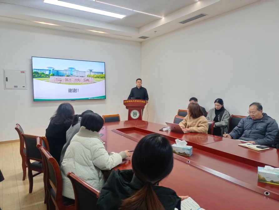 张清海就本学期以来实验室安全工作做了全面总结,并对下一步工作安排进行了全面部署。首先针对搬迁新校区以来实验室存在的主要问题做了详细的梳理,要求严格按照《高等学校实验室安全检查项目表》进行清理整顿,消除安全隐患,确保师生及财产安全。其次就学院共享空间管理及学生自习室分配方案做了说明,同时对用水、用电管理方案进行了说明解释。最后,希望全院各课题组、各实验室要高度重视安全工作,加强学生安全教育,落细落实安全责任,严格落实好日常安全检查及春节假期值日值班制度,确保岁末年初实验室运行畅通、安全。