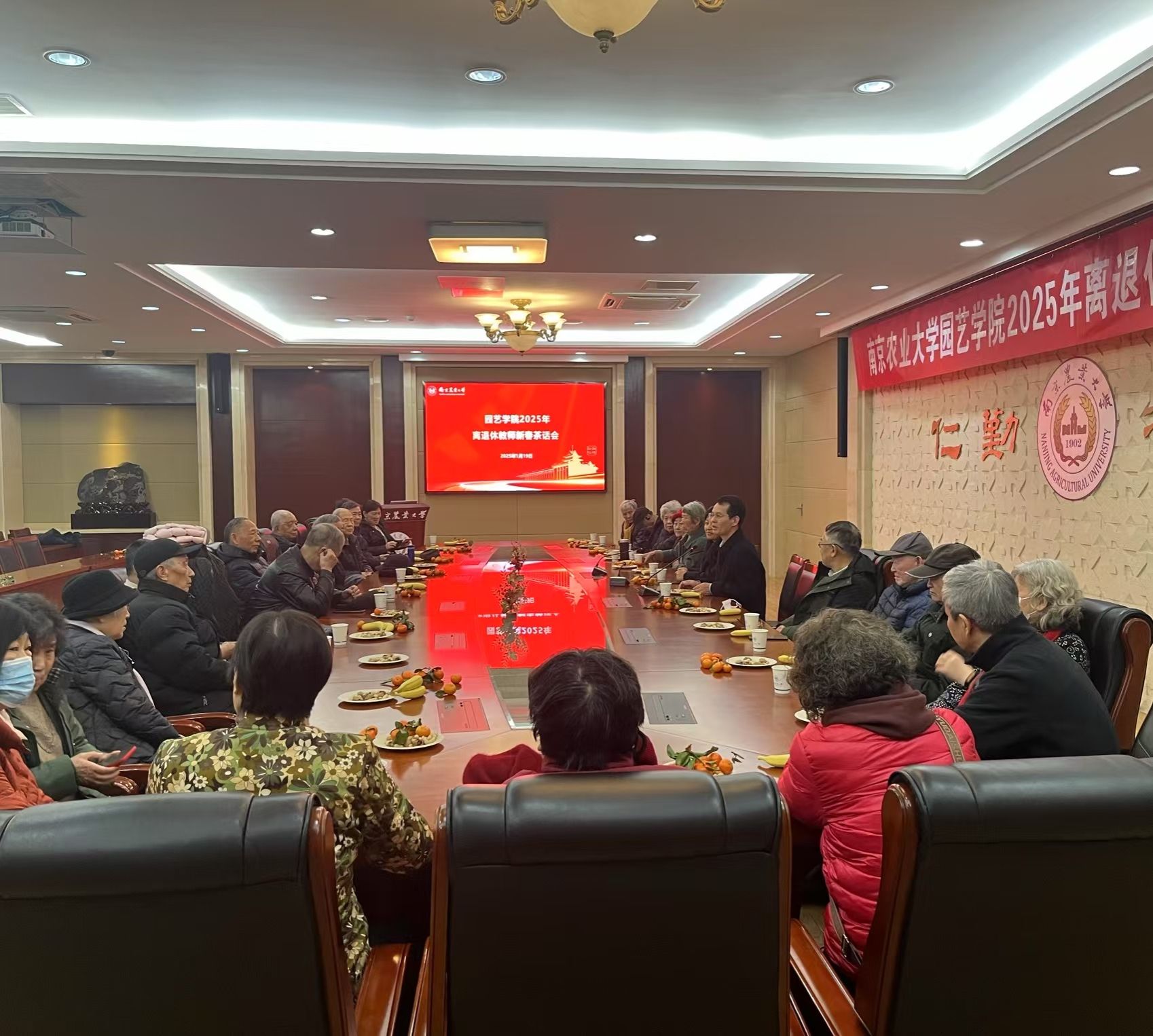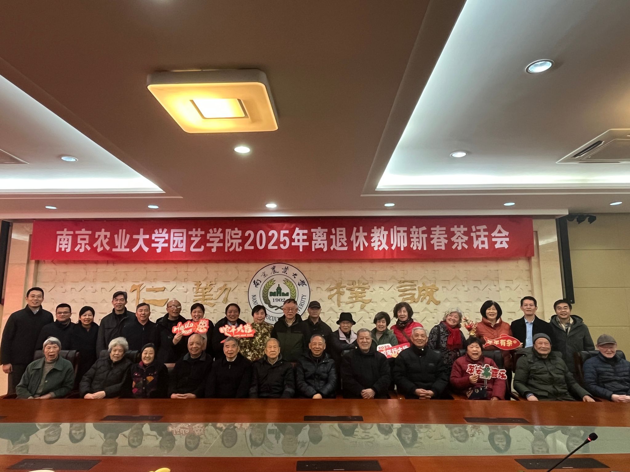 在卫岗校区金陵研究院二楼会议室隆重召开2025年度离退休老师新春茶话会。学院党委书记姚志友、院长陈素梅、副书记石木舟、副院长张清海、束胜出席会议。