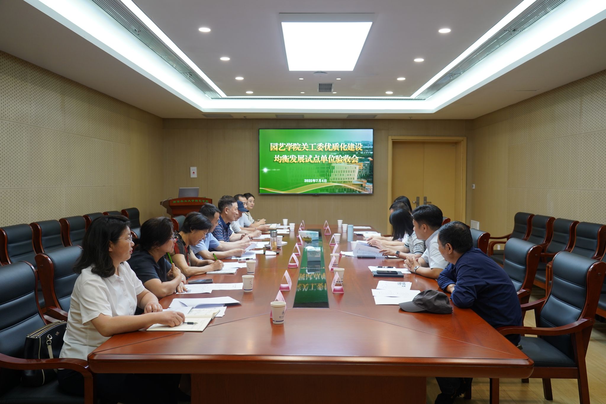 2025年7月4日,学校关工委优质化建设均衡发展试点单位验收工作组来我院开展现场验收工作。校党委常委、关工委常务副主任、验收工作组组长吴群主持验收会并讲话,校关工委常务副主任盛邦跃,校关工委副主任贾翠芳、张维强,组织部正处级组织员姜岩,离退休工作处党总支书记、处长、校关工委秘书长钱德洲,离退休工作处党总支副书记、副处长、校关工委副秘书长卢忠菊等参加验收。我院党委书记吴彦宁,党委副书记、关工委主任束浩渊,关工委常务副主任郭世荣,关工委副主任黄保健等参加验收会。