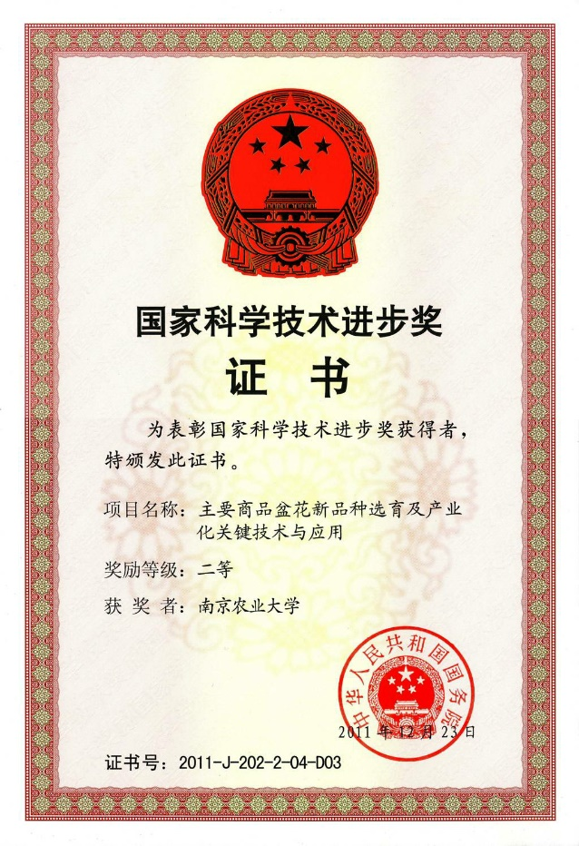 在Nat Commun、Mol Plant等期刊发表研究论文700余篇,发文量居同领域首位;获授权国家发明专利83件;国家植物新品种权162个、省级鉴定品种20个。打破了商业菊花品种长期依赖进口的局面,为推动我国菊花品种更新和产业升级做出了积极贡献。