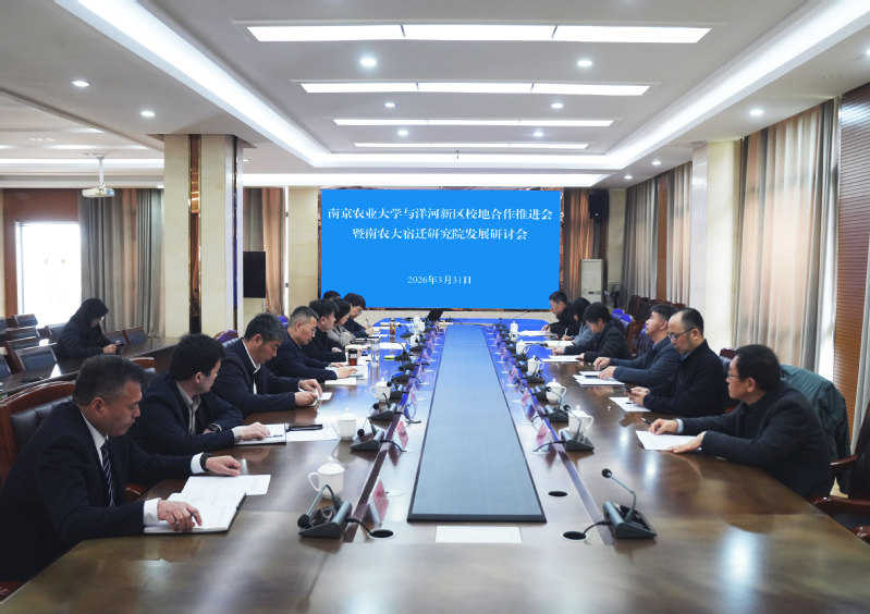 与洋河新区校地合作推进会暨南农大宿迁研究院发展研讨会。校社会合作处处长许承保、我院党委书记吴彦宁、副院长陶书田、宿迁研究院院长熊爱生陪同参加。