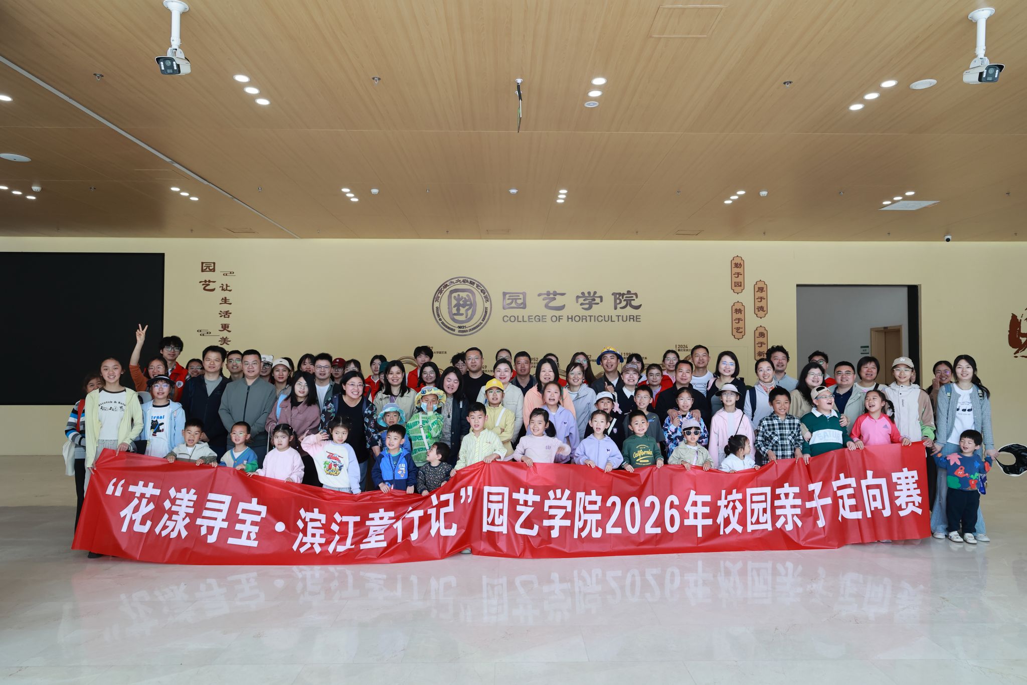 工会在学院党委指导下举办了“花漾寻宝·滨江童行记”2026年校园亲子定向赛。本次活动由学院工会精心策划组织,观赏茶学专业教师党支部、观赏学硕第一党支部及观赏学硕第二党支部协助承办,近30组教职工家庭与30名党员志愿者热情参与,在春日校园中开启了一场趣味与温情兼具的成长之旅。