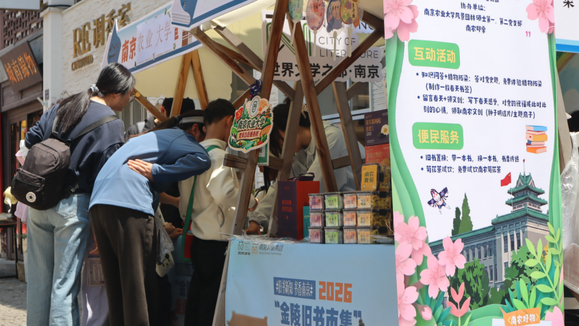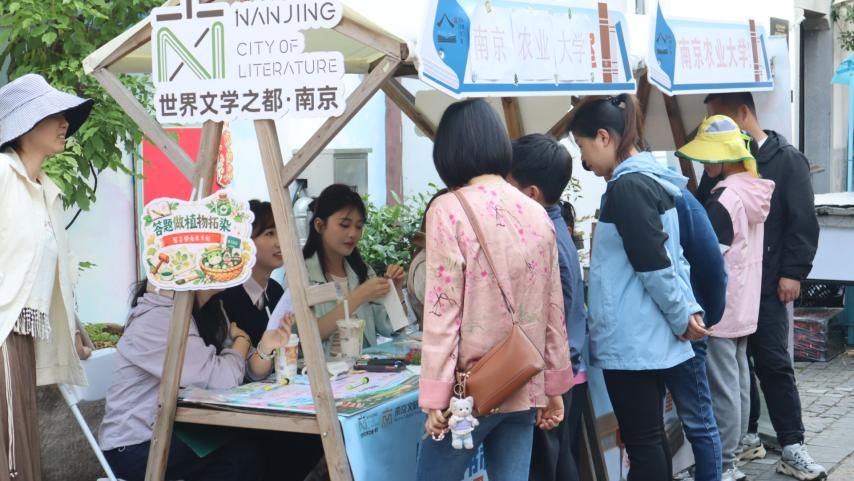 风景园林硕士第一、二党支部联合南农印象、朝天宫街道主办的2026金陵旧书集“草木知春”活动,在南京市秦淮区熙南里历史文化休闲街区举行。本次活动以“春耕读记·红心育苗”为主题,以党建+文化+公益为理念,将党史教育、绿色理念与街区文化深度融合,为市民游客带来一场兼具知识性、体验感与公益性的文化盛宴。