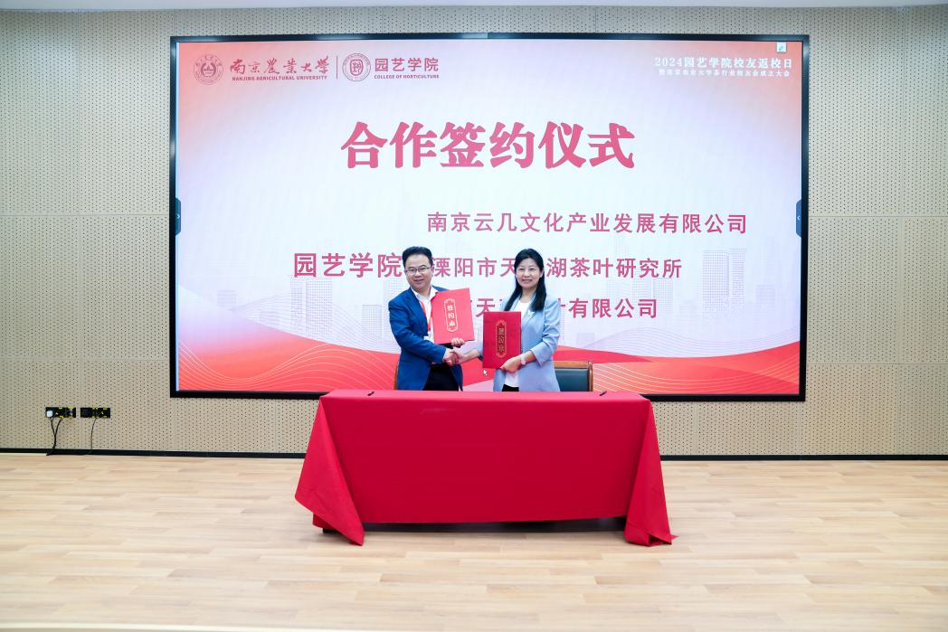 大会第一阶段还举行了校企合作签约、茶行业校友会理事会成员颁发聘书和授旗仪式。