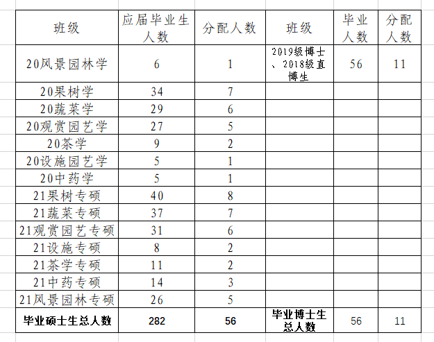 (按应届毕业研究生人数20%的比例计算,四舍五入),详见下表。