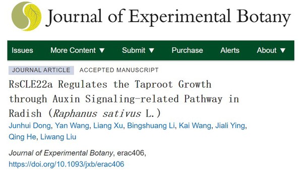 萝卜(Raphanus sativus L.)是一种重要的十字花科根菜类蔬菜作物,其肉质根由维管形成层不断分裂分化而来。维管形成层活性直接关系到萝卜肉质根形成膨大,影响其产量和商品价值。植物激素和信号肽在细胞间通讯、植物生长发育和环境响应中发挥着重要作用。CLAVATA3/EMBRYO SURROUNDING REGION-related(CLE)多肽分子广泛参与植物生长发育,但CLE肽在萝卜肉质根形成中的作用机制仍不明确。2022年10月14日,国际植物科学领域知名期刊Journal of Experimental Botany在线发表了天天a片