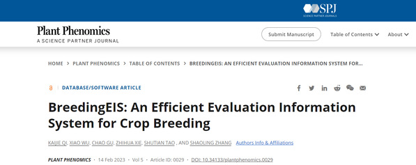 题为“BreedingEIS: an efficient evaluation information system for crop breeding”的文章,该研究基于当前流行的计算机、智能手机和近场通信(NFC)技术,开发了一个免费、安全的新育种信息平台(BreedingEIS,“云上后稷”),详细介绍了该育种系统的基本原理、设计、部署和使用方法,并指出了该育种系统的未来发展计划。